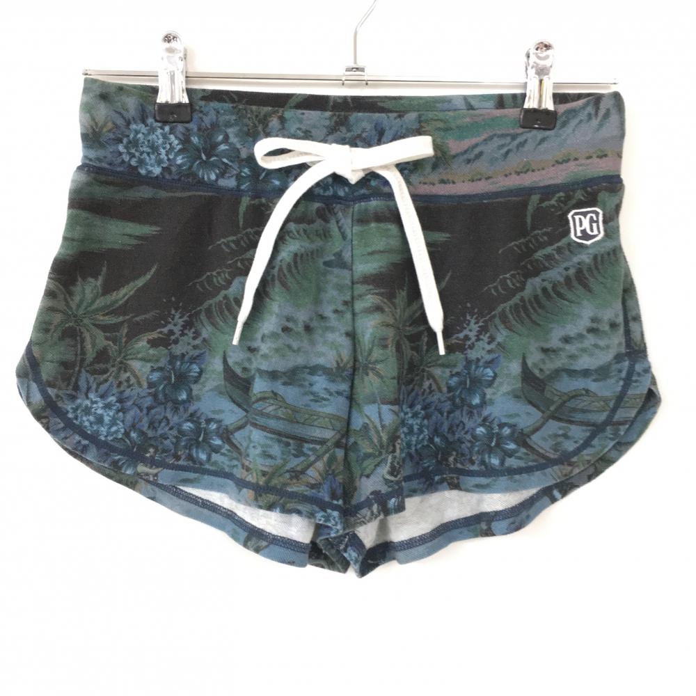 【超美品】PEARLY GATES パーリーゲイツ ショートパンツ グリーン×ネイビー 総柄 ウエスト調整紐 レディース 1(M) ゴルフウェア