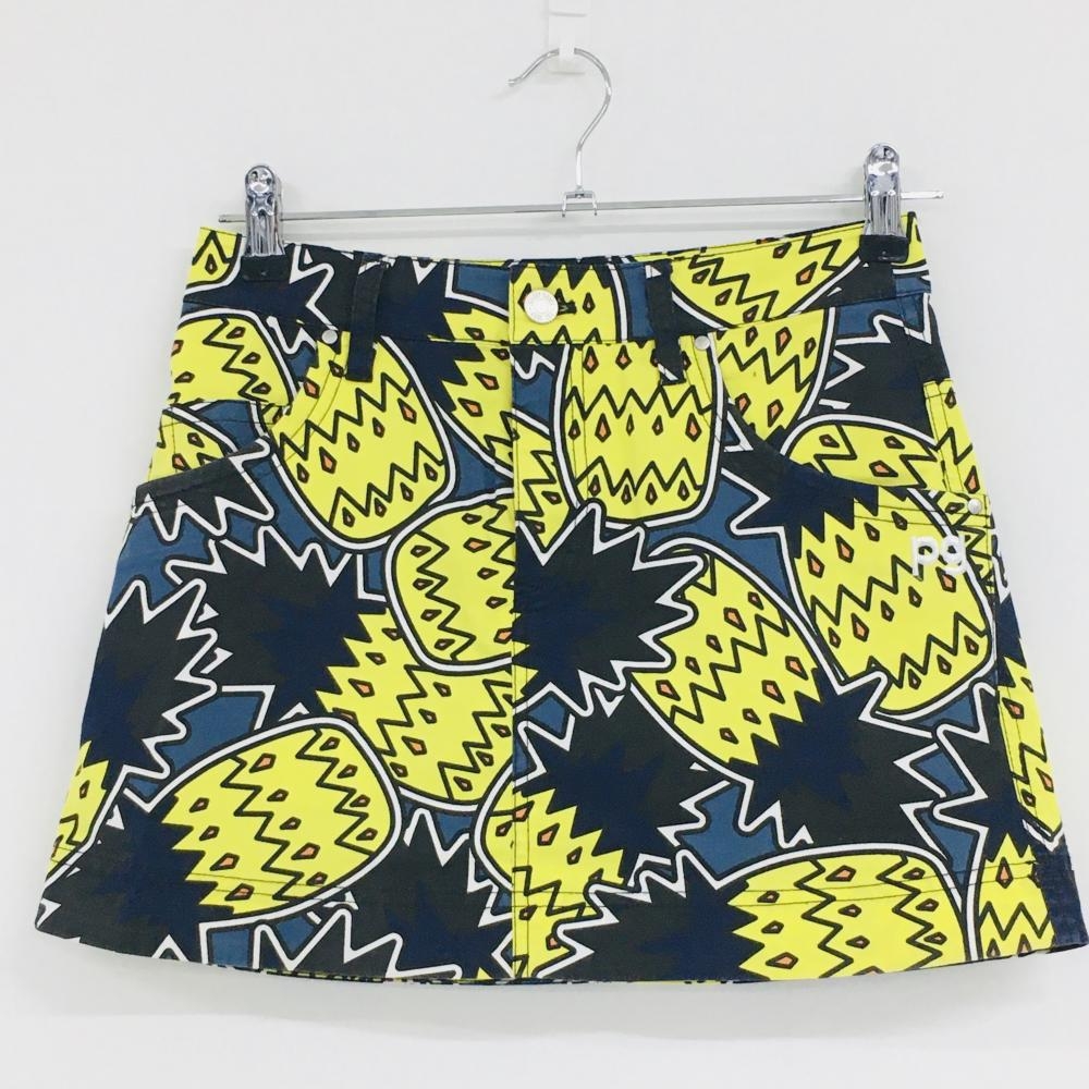 パーリーゲイツ スカート イエロー×黒 パイナップル総柄 レディース 00(XS) ゴルフウェア PEARLY GATES