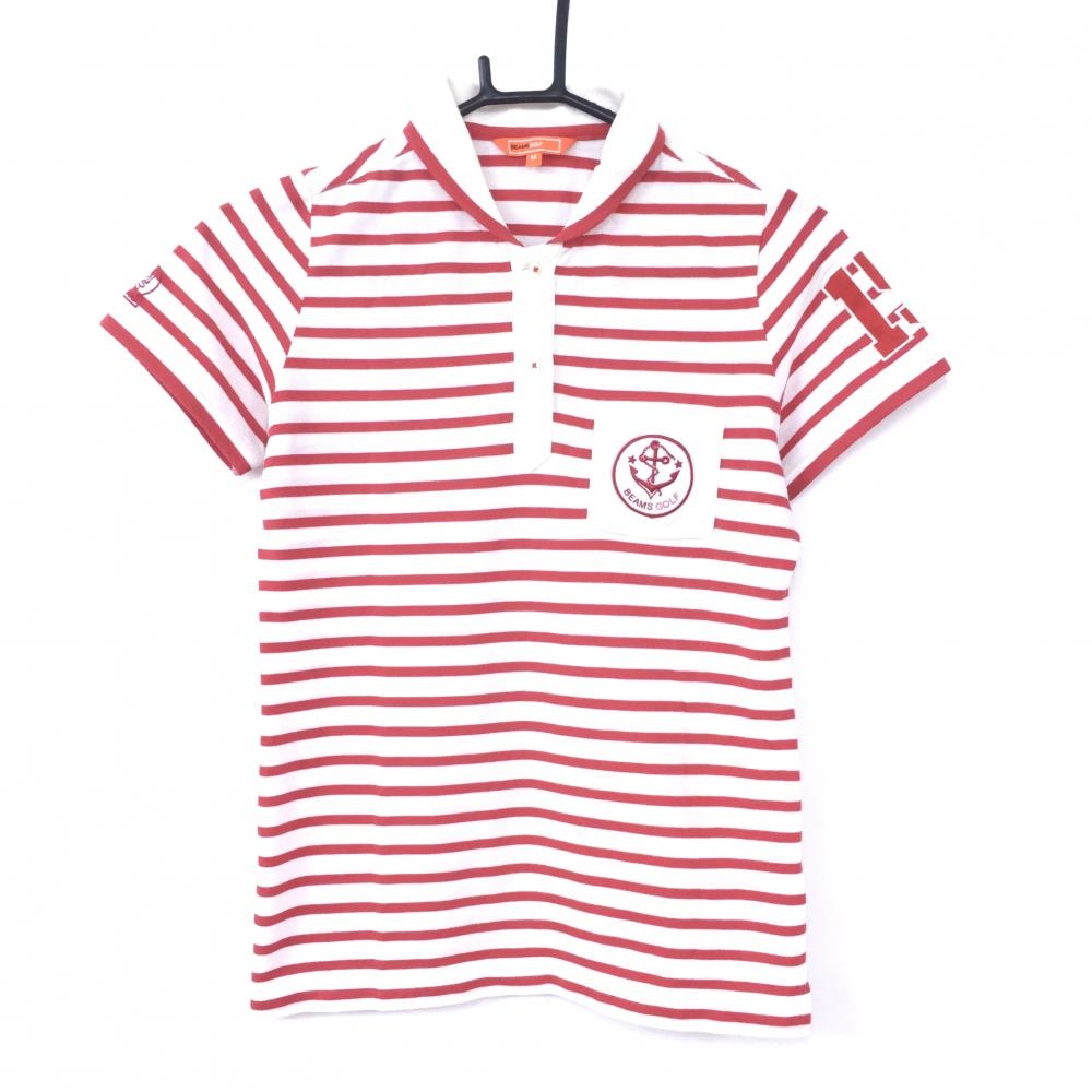 BEAMS GOLF ビームスゴルフ 半袖ポロシャツ 白×レッド ボーダー ロゴ×イカリワッペン レディース M ゴルフウェア