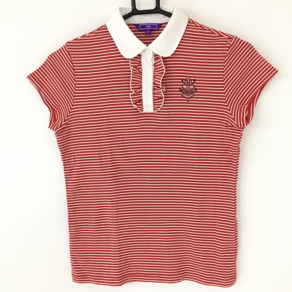 ビームスゴルフ 半袖ポロシャツ レッド×白 ボーダー 前立てフリル レディース S ゴルフウェア BEAMS GOLF