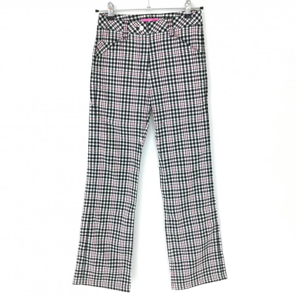 ビバハート パンツ 黒×白×ピンク チェック柄 レディース 38 ゴルフウェア VIVA HEART