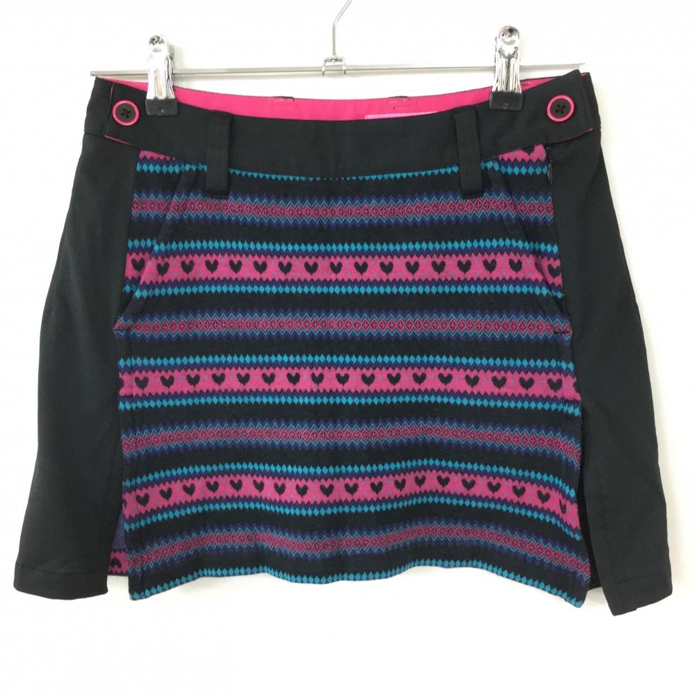 【美品】ビバハート スカート 黒×ピンク ハートボーダー サイド切替 内側インナーパンツ レディース 38 ゴルフウェア VIVA HEART