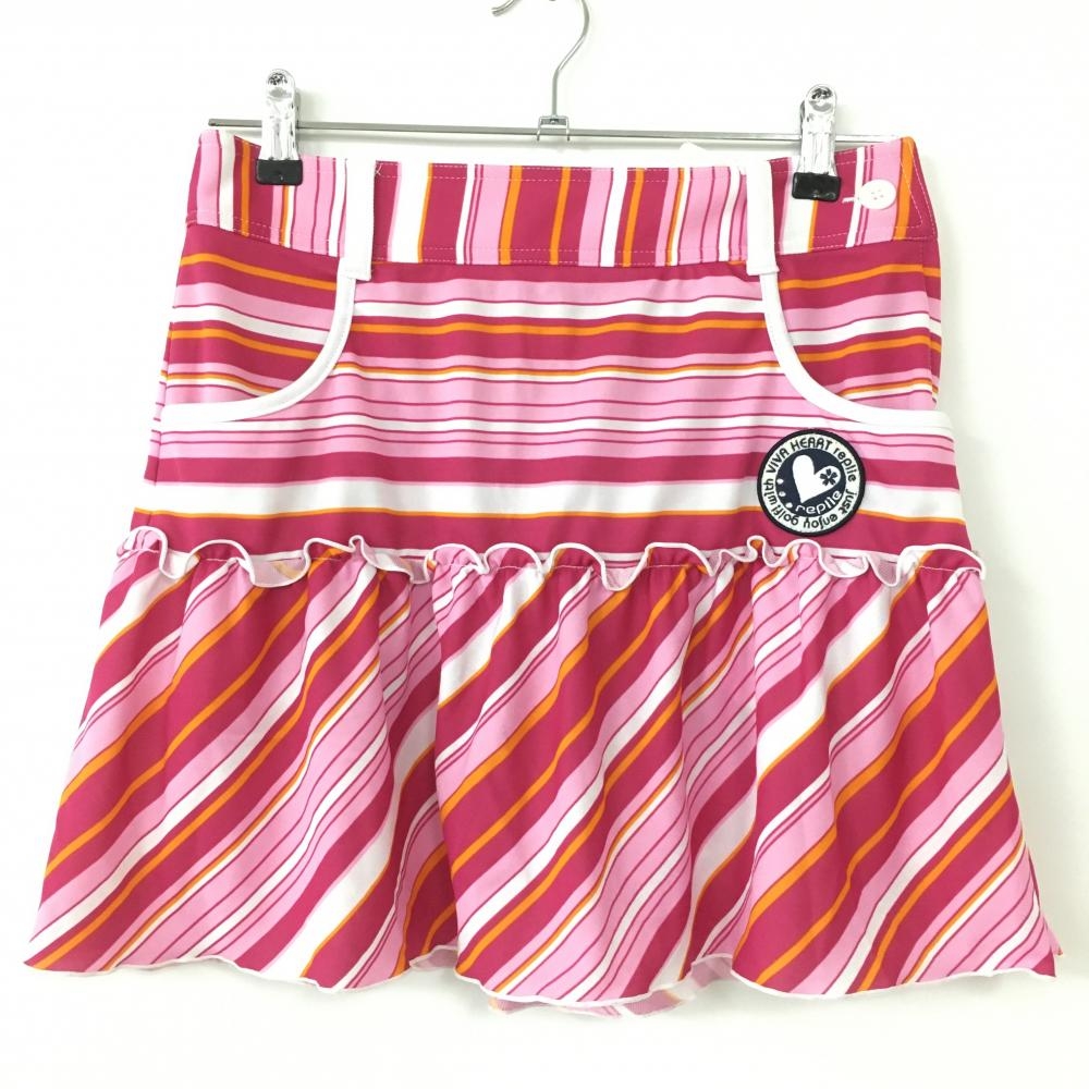 【新品】ビバハート レプリエ スカート ピンク×白 ボーダー×斜めストライプ 吸水速乾 レディース 40 ゴルフウェア 45%OFF~ VIVA HEART