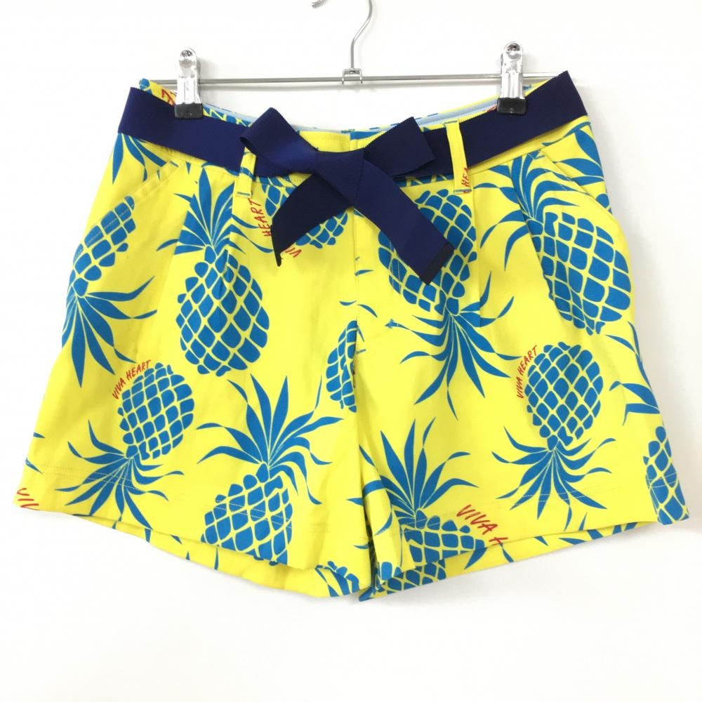 ビバハート キュロットスカート イエロー×ブルー パイナップル総柄 レディース 38 ゴルフウェア VIVA HEART