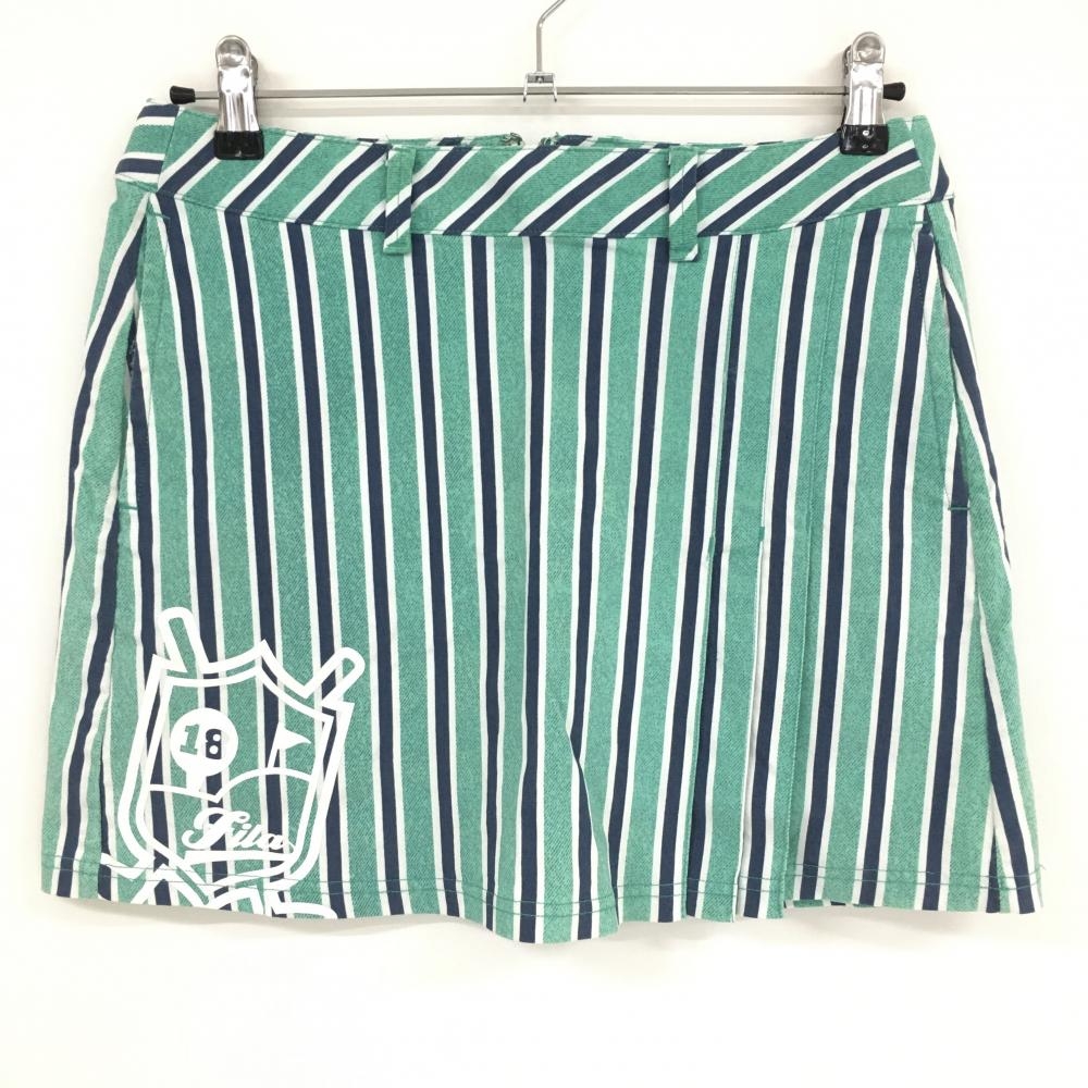 【美品】フィラゴルフ ストレッチスカート ライトグリーン×ネイビー ストライプ 一部プリーツ レディース L ゴルフウェア FILA GOLF