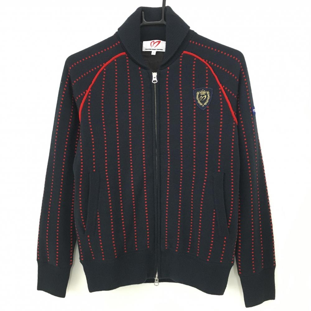 【超美品】マスターバニー ニットジャケット ネイビー×レッド ドットストライプ レディース 1(M) ゴルフウェア MASTER BUNNY EDITION