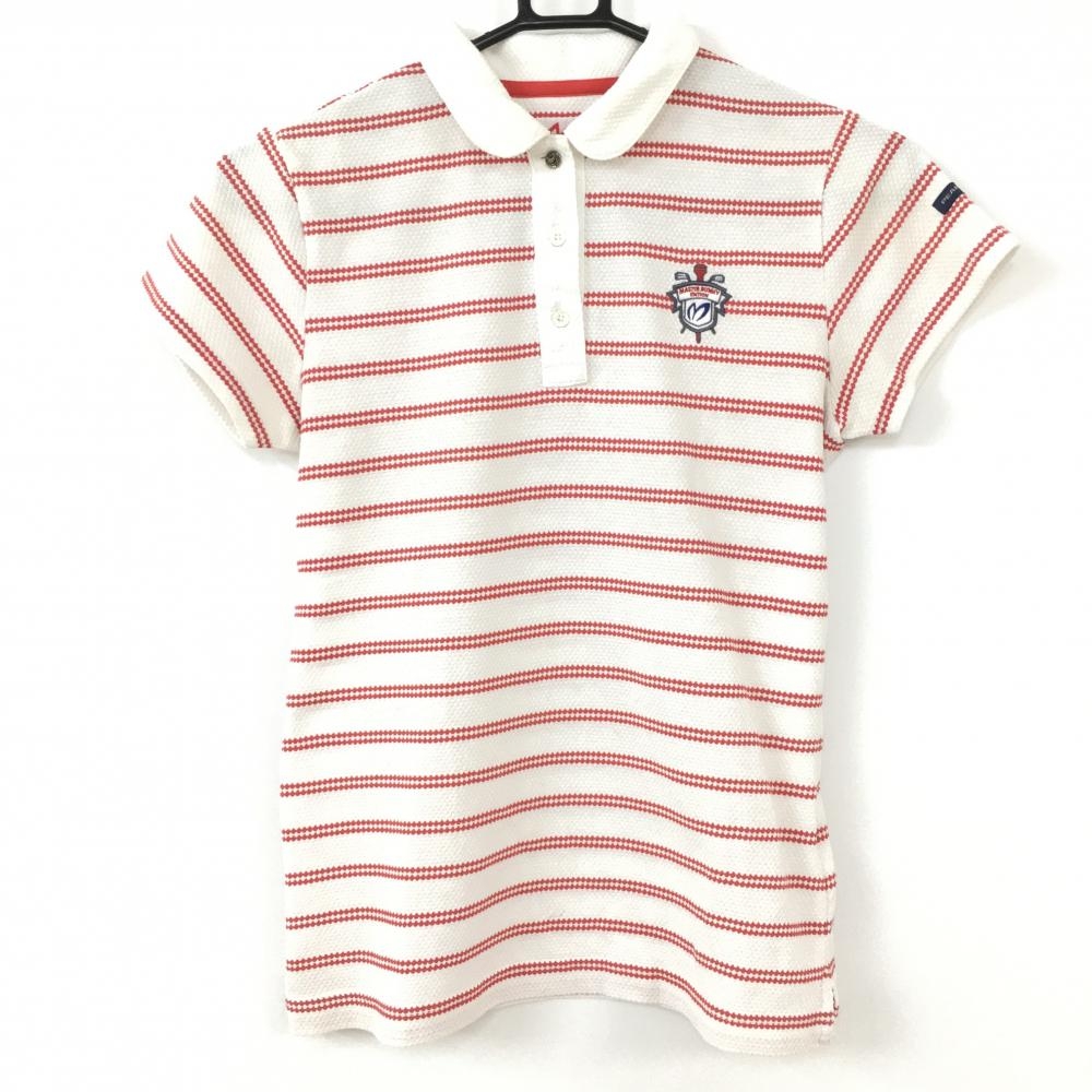 MASTER BUNNY EDITION マスターバニー 半袖ポロシャツ レッド×白 ボーダー調 丸襟 レディース 0(S) ゴルフウェア