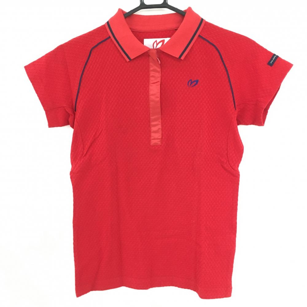 【超美品】マスターバニー 半袖ポロシャツ レッド×ネイビー 日本製 ハーフジップ レディース 0(S) ゴルフウェア MASTER BUNNY EDITION
