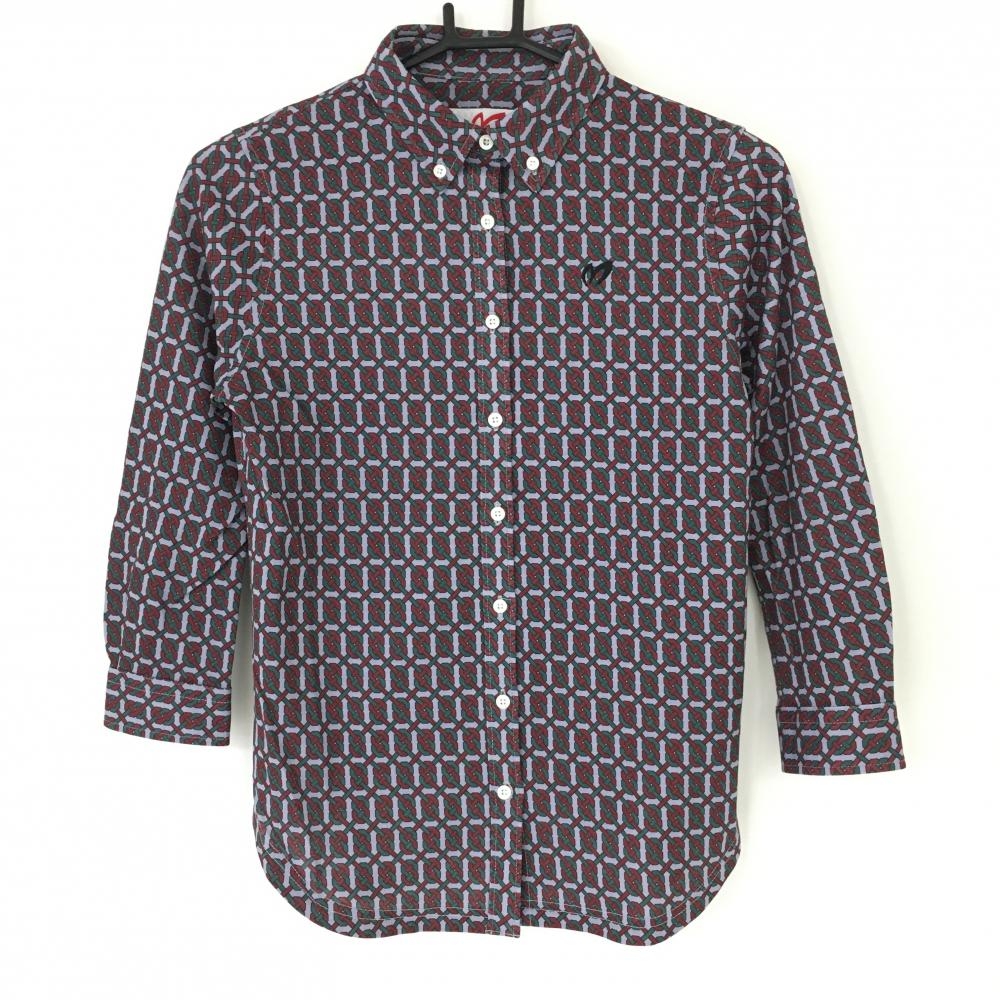 【超美品】マスターバニー 七分袖シャツ ダークグリーン×ボルドー 総柄 ボタンダウン レディース 0(S) ゴルフウェア MASTER BUNNY EDITION