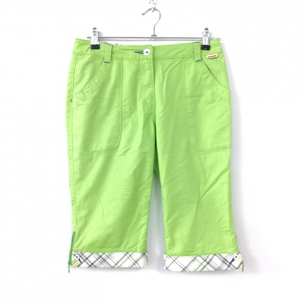 marie claire マリクレールスポール 半端丈パンツ ライトグリーン 一部チェック 裾ジップ レディース M ゴルフウェア