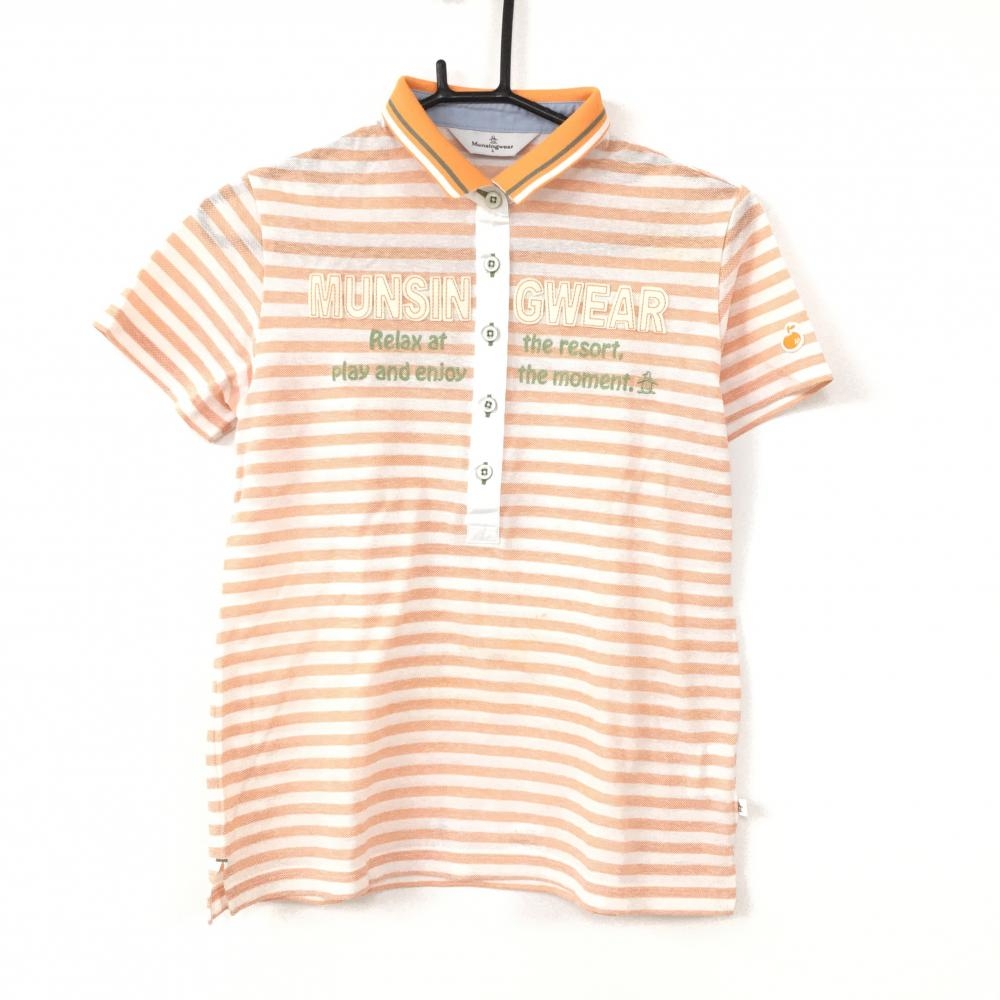 Munsingwear マンシングウェア 半袖ポロシャツ オレンジ×白 ボーダー フェルトワッペン レディース L ゴルフウェア