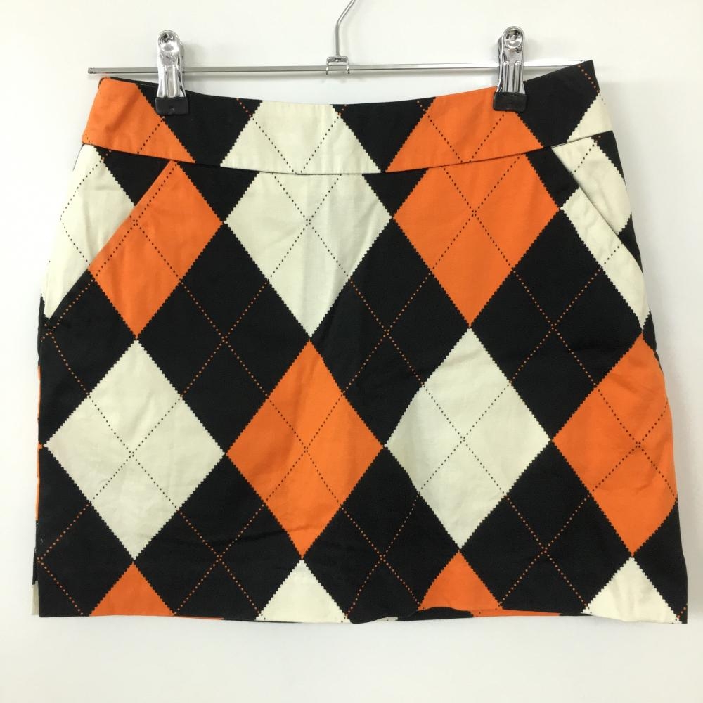 ラウドマウス スカート 黒×オレンジ アーガイル柄 内側インナーパンツ ストレッチ レディース US 2 ゴルフウェア LOUDMOUTH