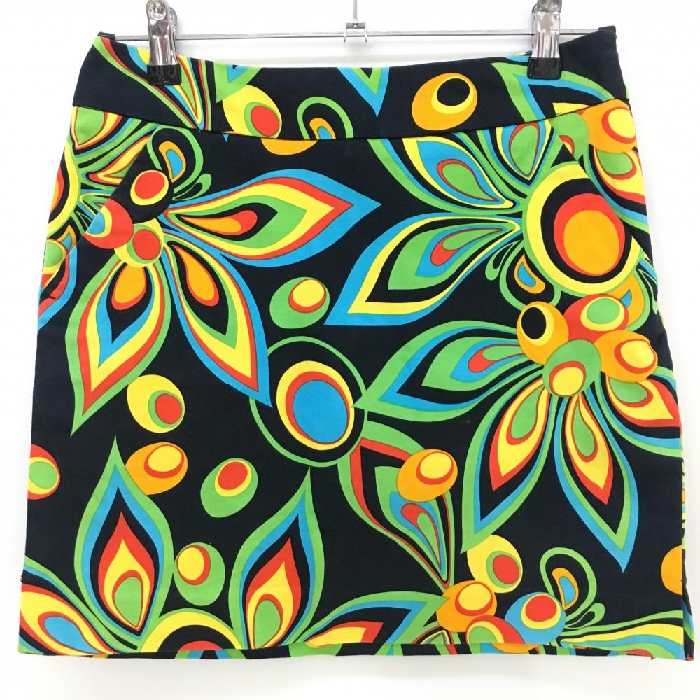 【美品】ラウドマウス スカート 黒×マルチ シャガデリックブラック 花柄 内側インナーパンツ レディース US 2 ゴルフウェア LOUDMOUTH
