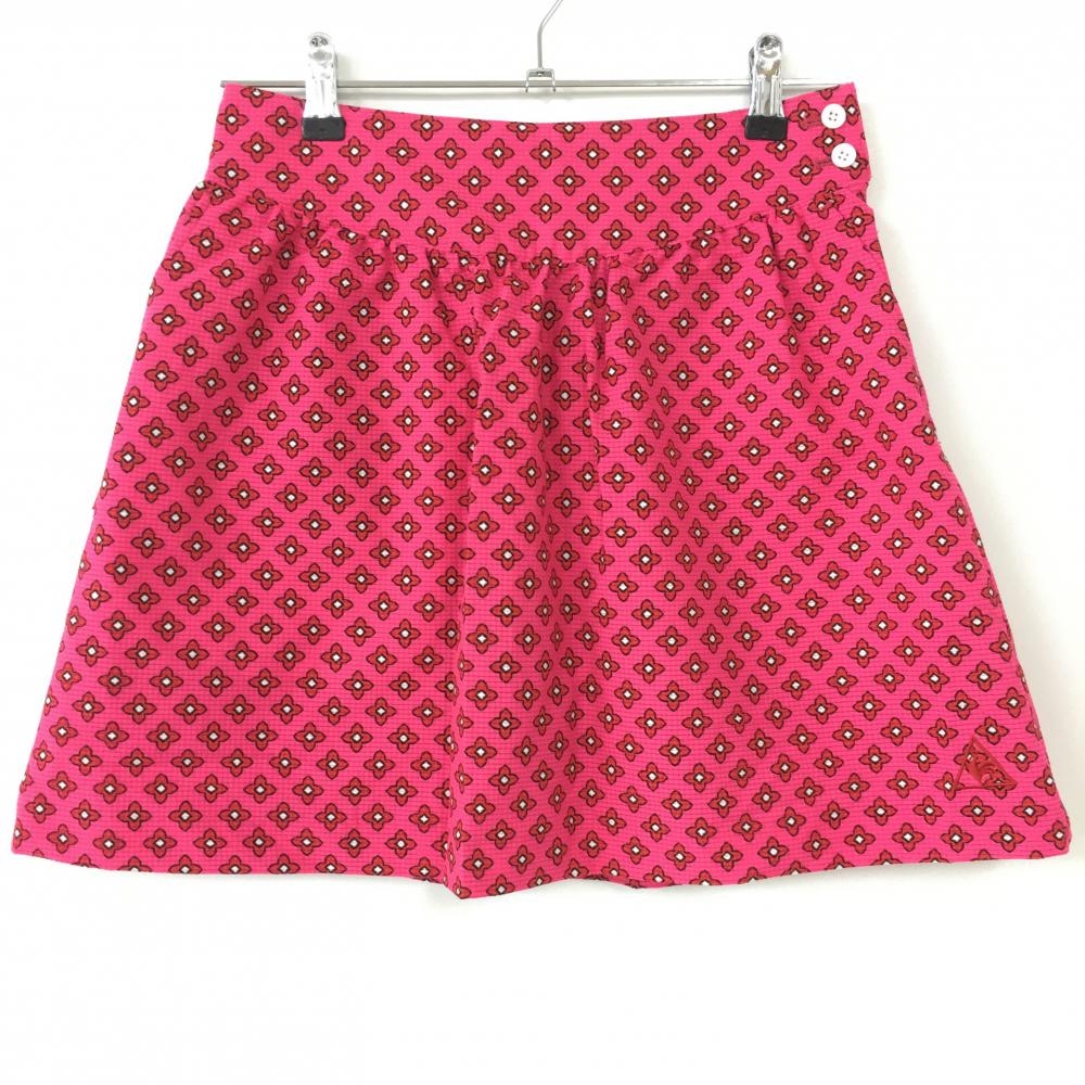 【美品】le coq sportif ルコック ストレッチスカート ピンク×レッド 花柄 メッシュ生地 レディース 9 ゴルフウェア