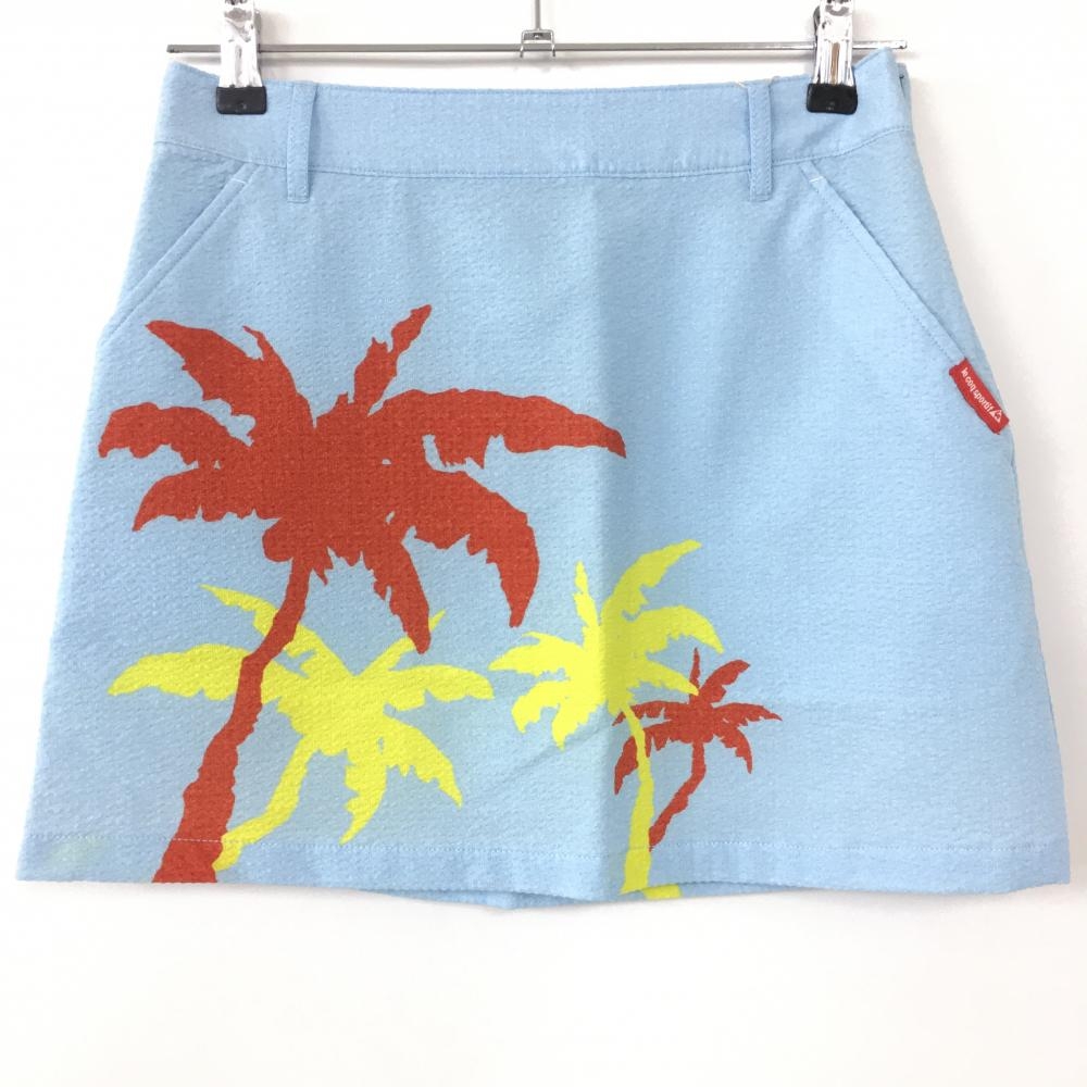 【新品】45%OFF~le coq sportif ルコック スカート ライトブルー×レッド サッカー生地 ヤシの木 レディース 9 ゴルフウェア