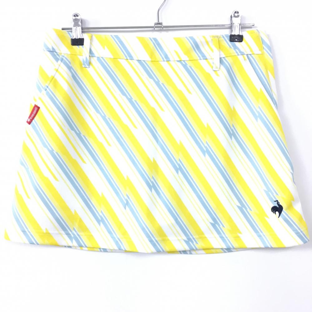 【新品】2022年 20%OFF~le coq sportif ルコック スカート 白×イエロー 斜めギザギザボーダー レディース 11 ゴルフウェア