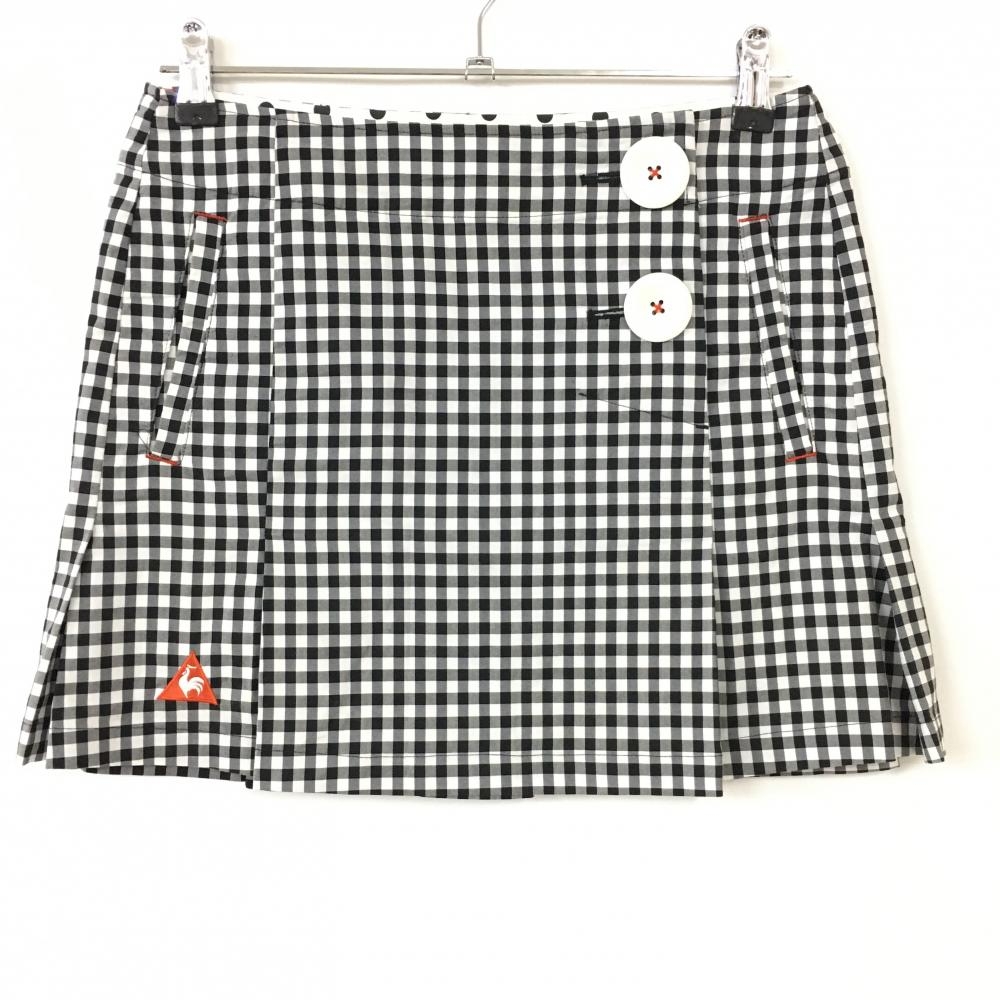 【美品】シェルボ スカート 黒×白 チェック柄 内側インナーパンツ レディース S ゴルフウェア CHERVO