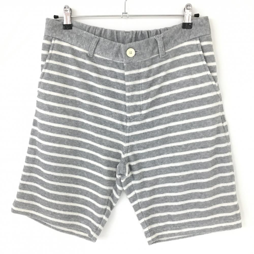 【新品】パームスアンドコー ハーフパンツ グレー×白 ボーダー パイル地 ウエスト調節紐 メンズ S ゴルフウェア PALMS&CO.