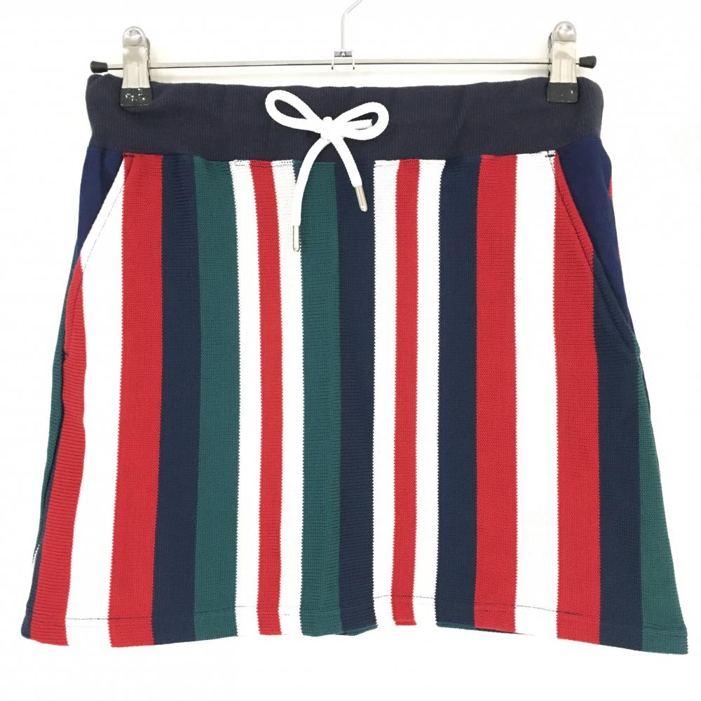 【新品】パームスアンドコー ニットスカート ネイビー×白×レッド ストライプ ウエストゴム レディース S ゴルフウェア PALMS&CO.