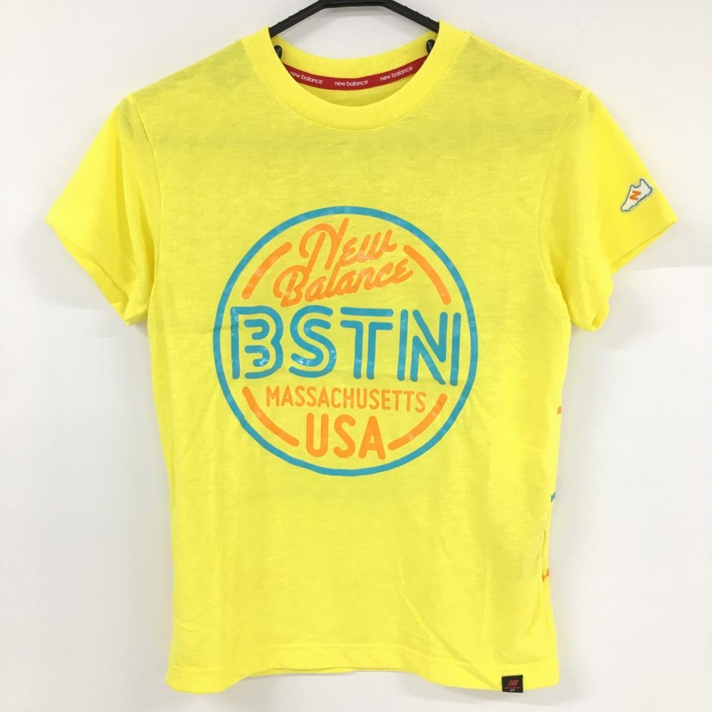 【美品】ニューバランスゴルフ 半袖Tシャツ イエロー×ライトブルー バックボーダー レディース 2(L) ゴルフウェア New Balance