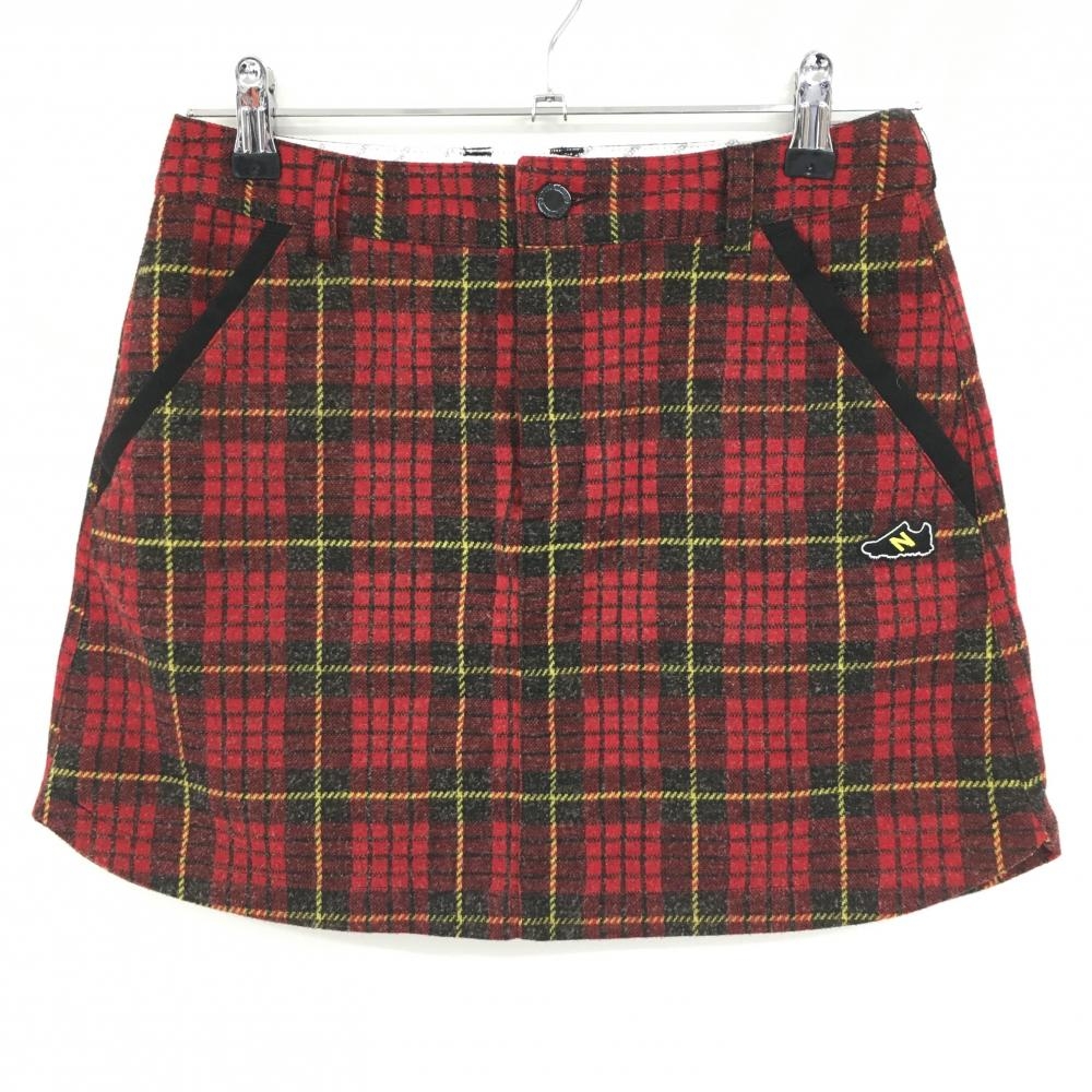 【美品】ニューバランスゴルフ スカート レッド×イエロー チェック柄 表起毛 ストレッチ レディース 0(S) ゴルフウェア New Balance
