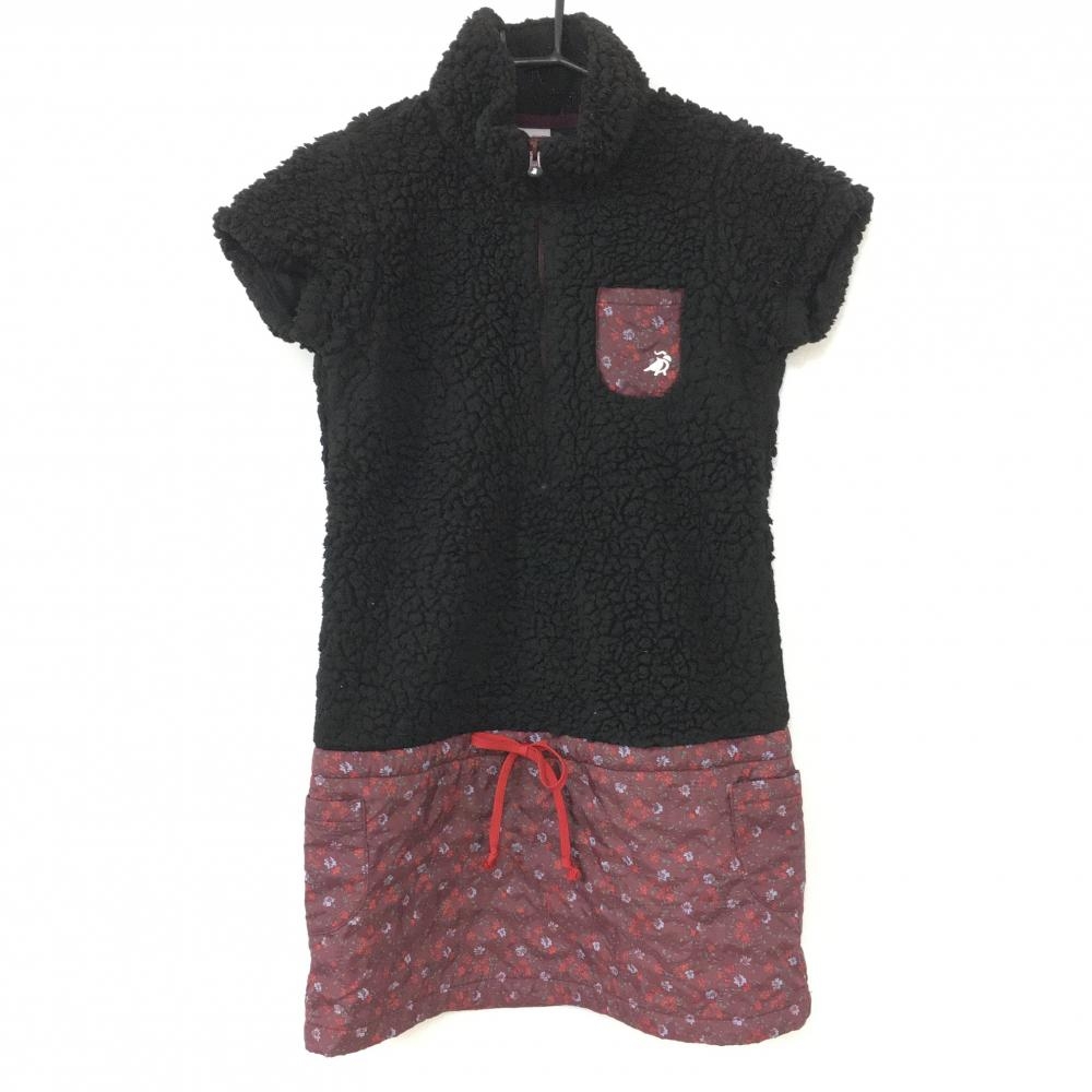 パラディーゾ 半袖ボア切替ワンピース 黒×ボルドー 一部花柄 裏起毛 ハーフジップ レディース L ゴルフウェア Paradiso