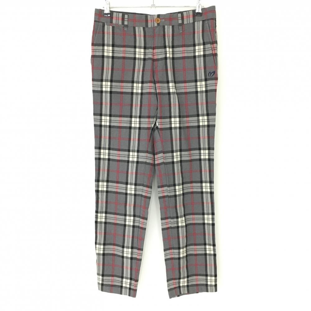 【美品】マスターバニー ウールパンツ グレー×レッド チェック柄 ウール98% メンズ 5(L) ゴルフウェア MASTER BUNNY EDITION