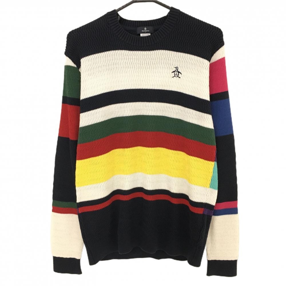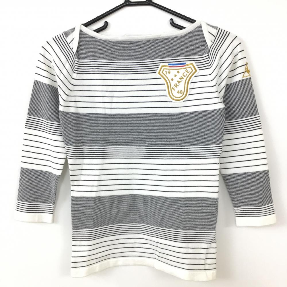 le coq sportif ルコック 長袖ニット トレーナー 白×黒 ボーダー ワッペン レディース S ゴルフウェア