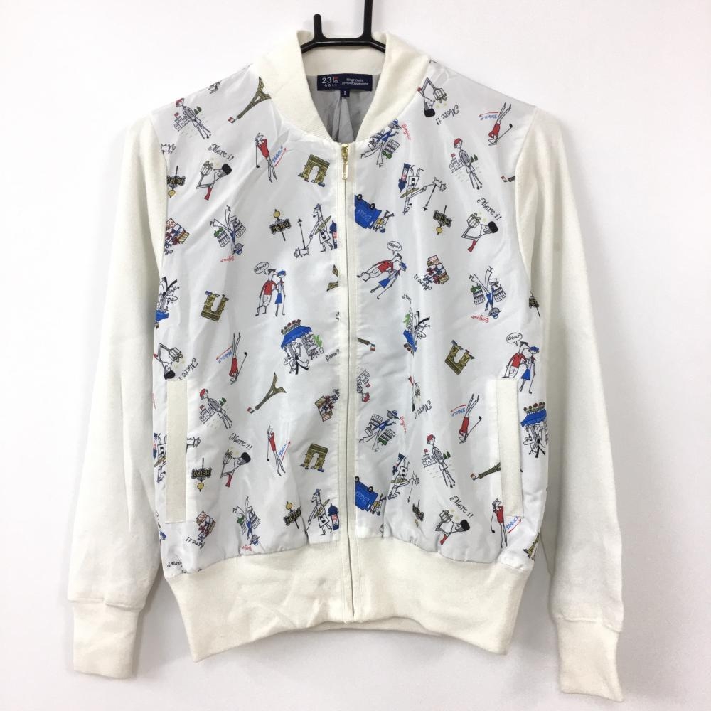 23区ゴルフ 異素材ジャケットブルゾン 白×レッド 一部柄 ニット レディース I(M) ゴルフウェア 23区