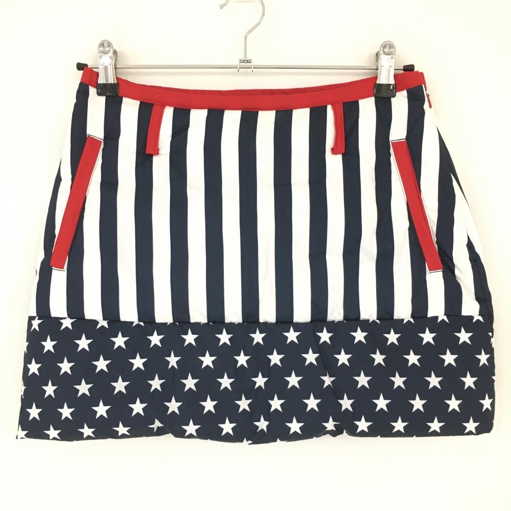 【美品】キャロウェイ ダウンスカート 白×ネイビー 星条旗柄 ダウン90% レディース S ゴルフウェア Callaway