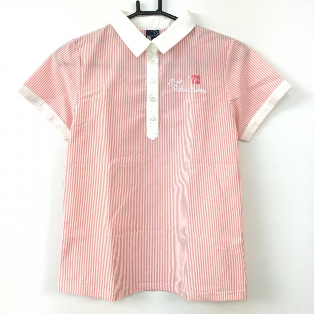 PAR72 パーセッタンタドゥエ 半袖ポロシャツ レッド×白 ストライプ サッカー生地 レディース M ゴルフウェア