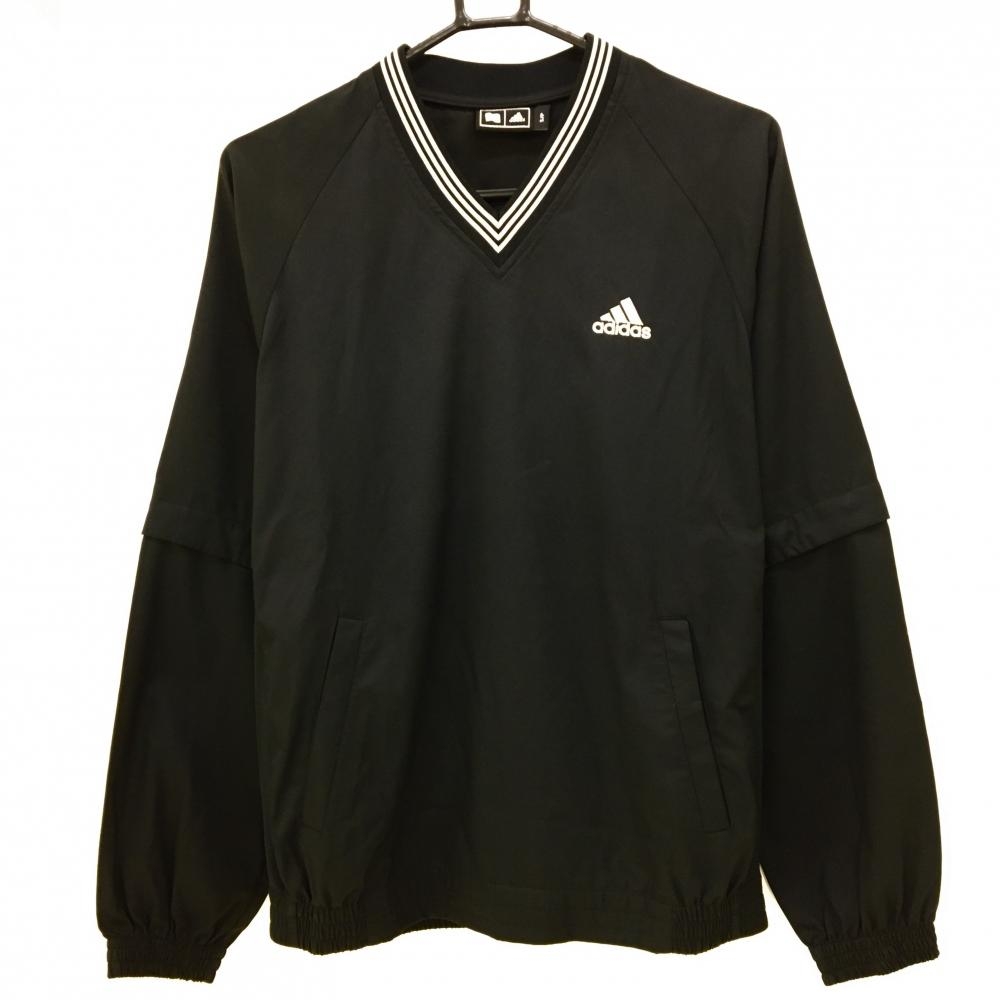 【美品】アディダス 半袖スニード 黒×白 3ライン Vネック 裾ゴム ブルゾン メンズ O/XG ゴルフウェア adidas