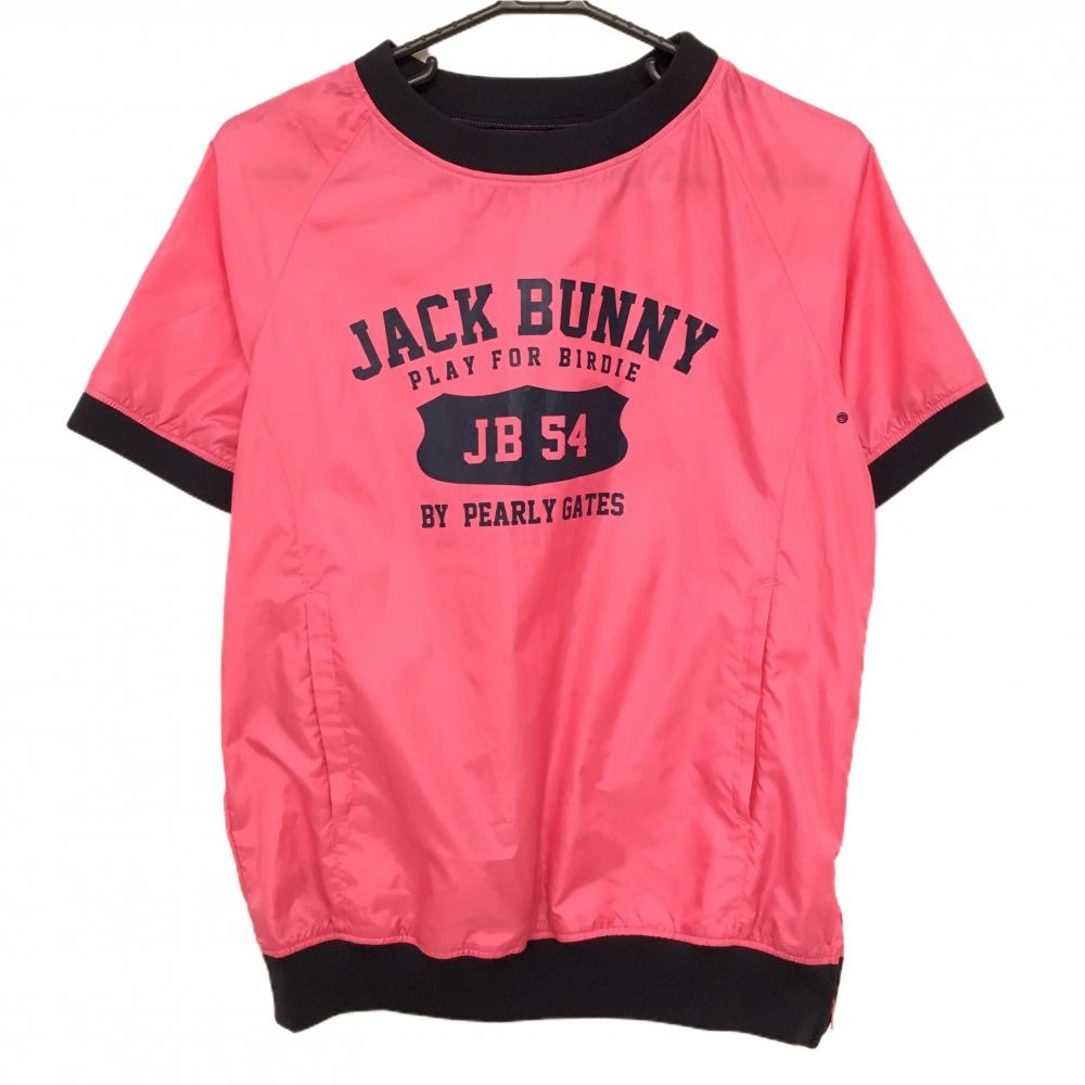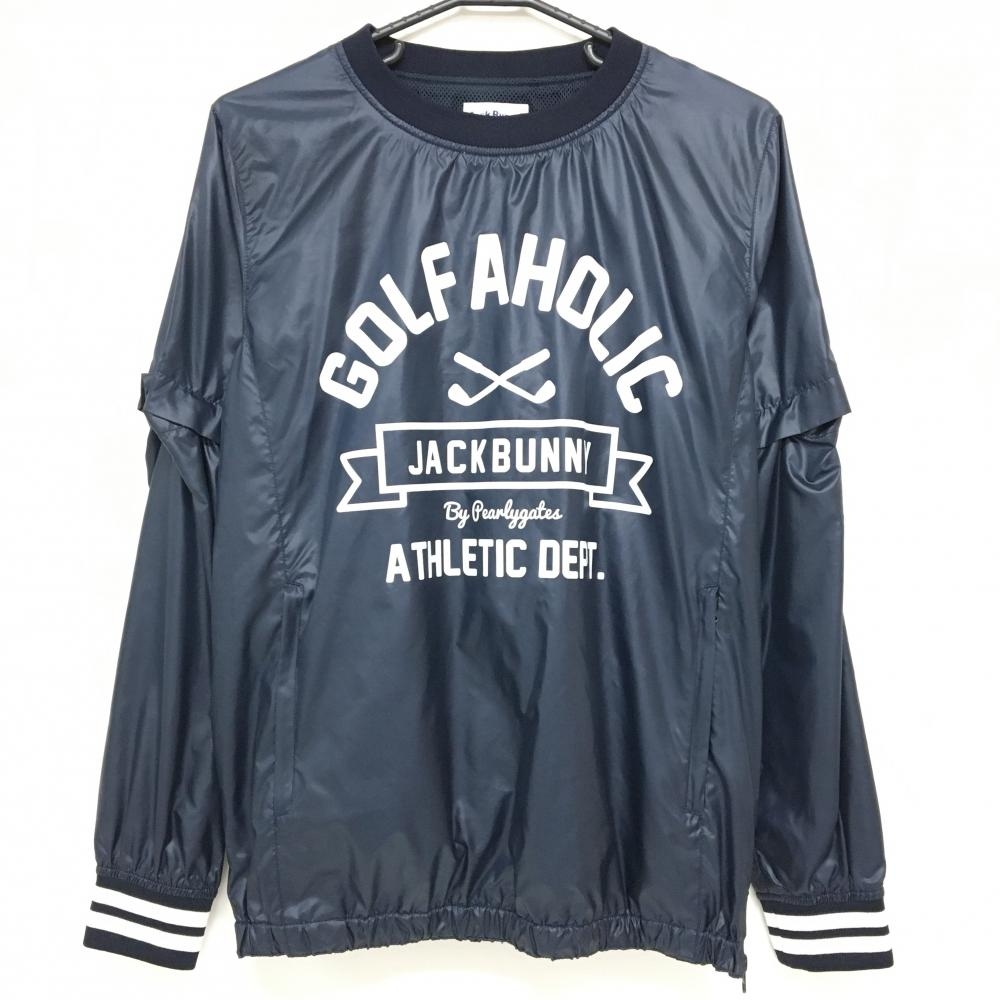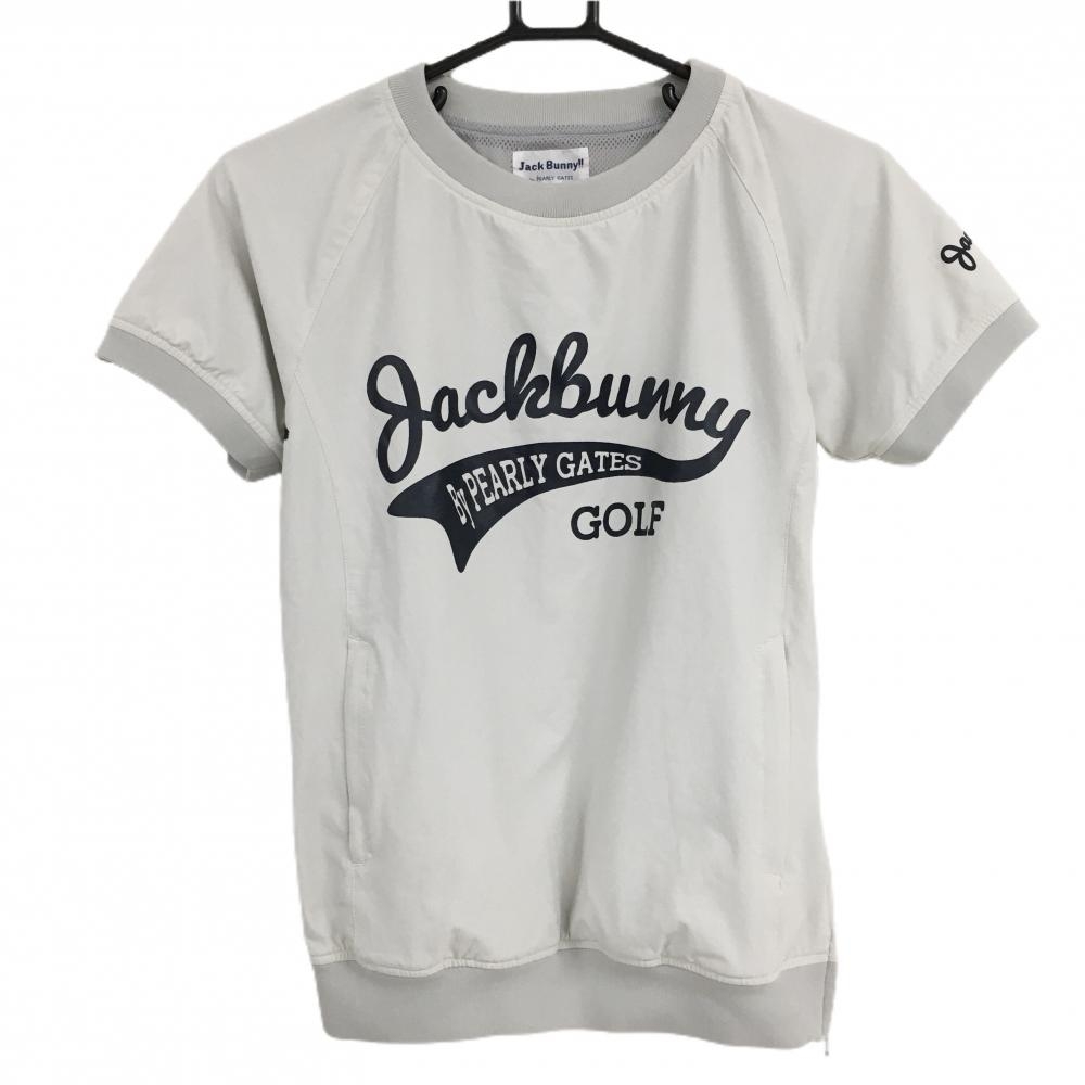 【美品】ジャックバニー 半袖スニード 白×ネイビー フロントロゴ メッシュ裏地 ブルゾン レディース 1(M) ゴルフウェア Jack Bunny