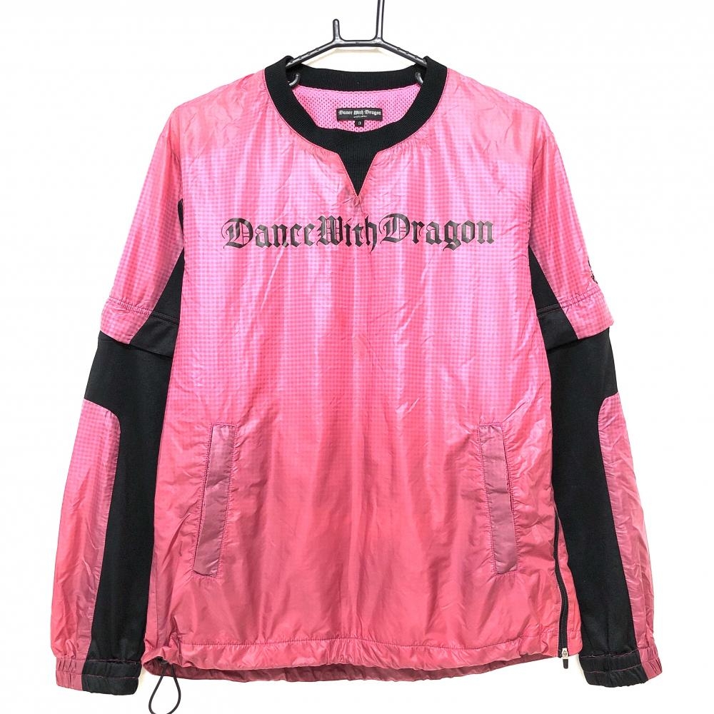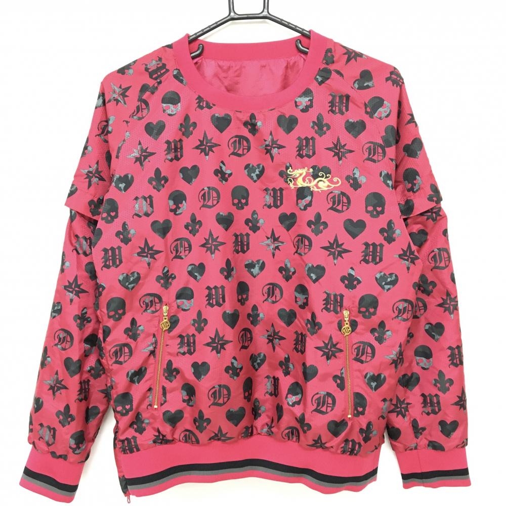 【超美品】ダンスウィズドラゴン 半袖スニード レッド×黒 フロントレオパード柄ロゴ レディース 2(M) ゴルフウェア Dance With Dragon