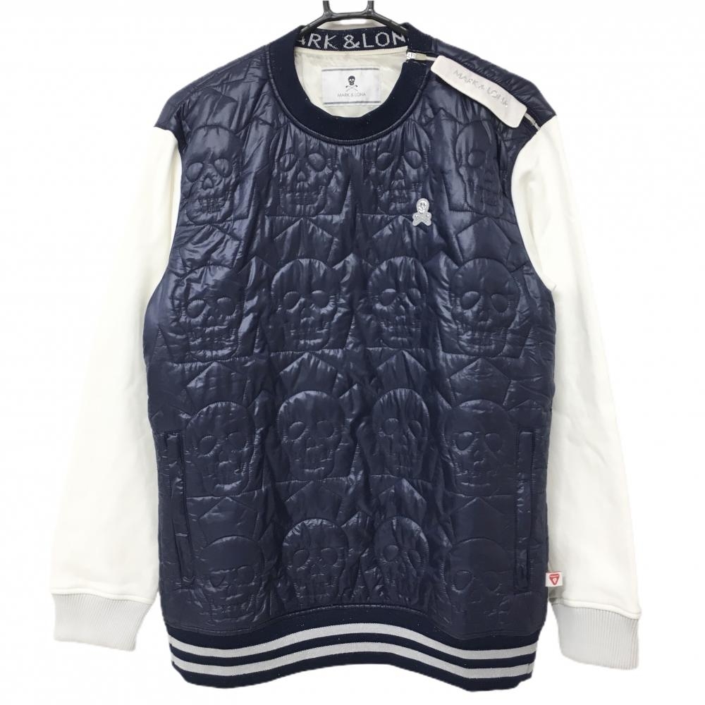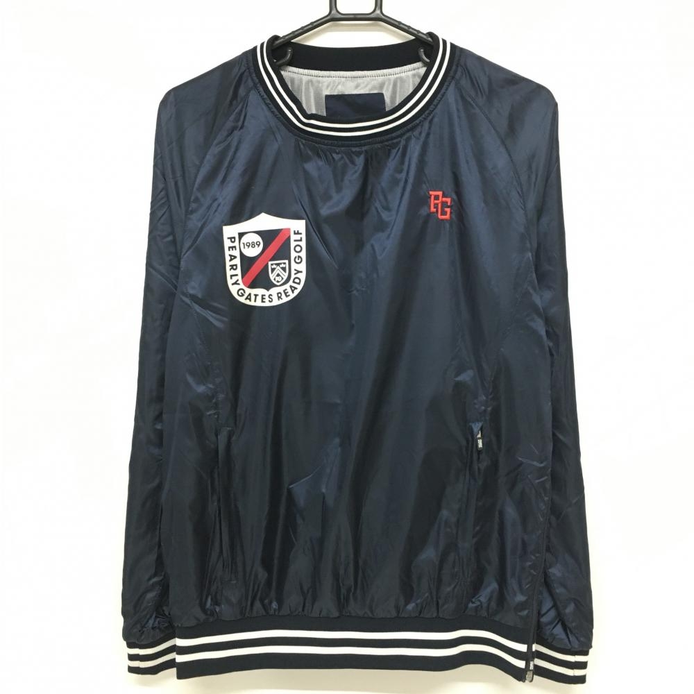 【美品】パーリーゲイツ スニード 白×ネイビー 蓄熱裏地 フロントロゴ メンズ 6(XL) ゴルフウェア PEARLY GATES