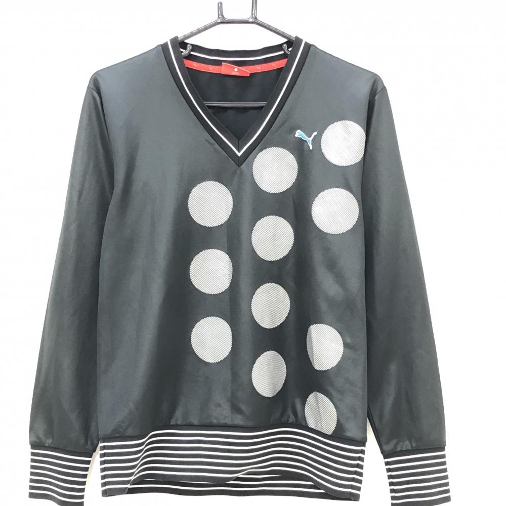 【美品】プーマ スニード グレー×黒 総柄 Vネック 裏地メッシュ ブルゾン メンズ M ゴルフウェア PUMA