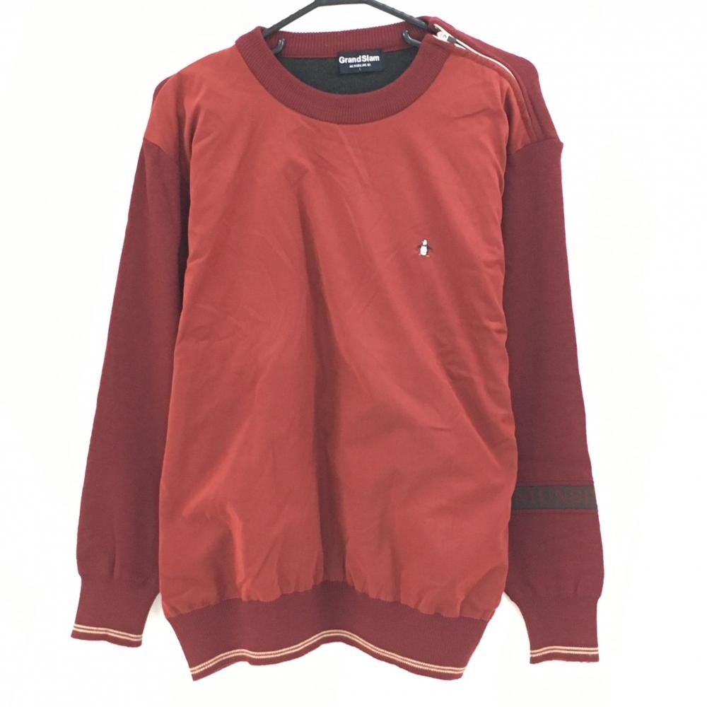 【超美品】アディダス スニード レッド×ボルドー ロゴシルバー 裏微起毛 ブルゾン メンズ M ゴルフウェア adidas