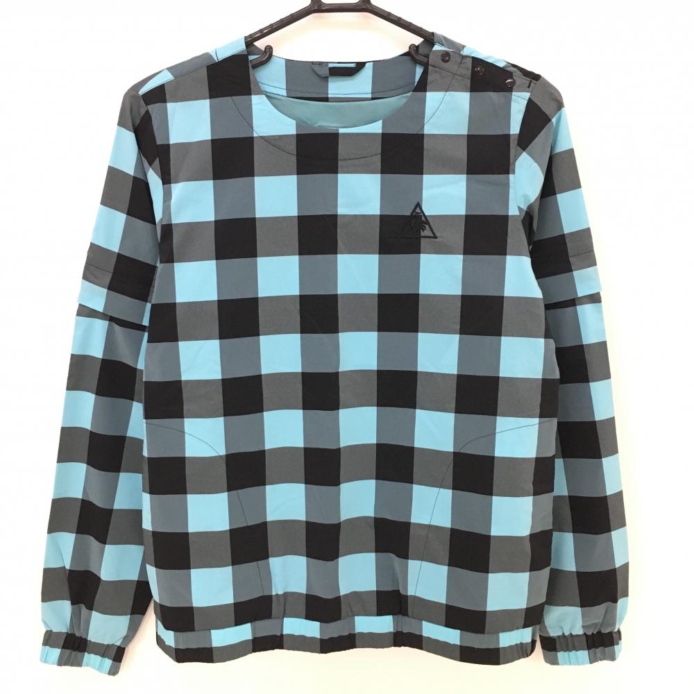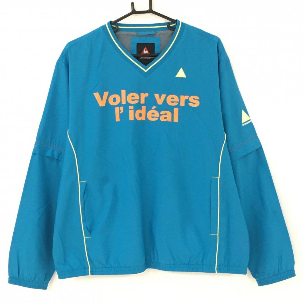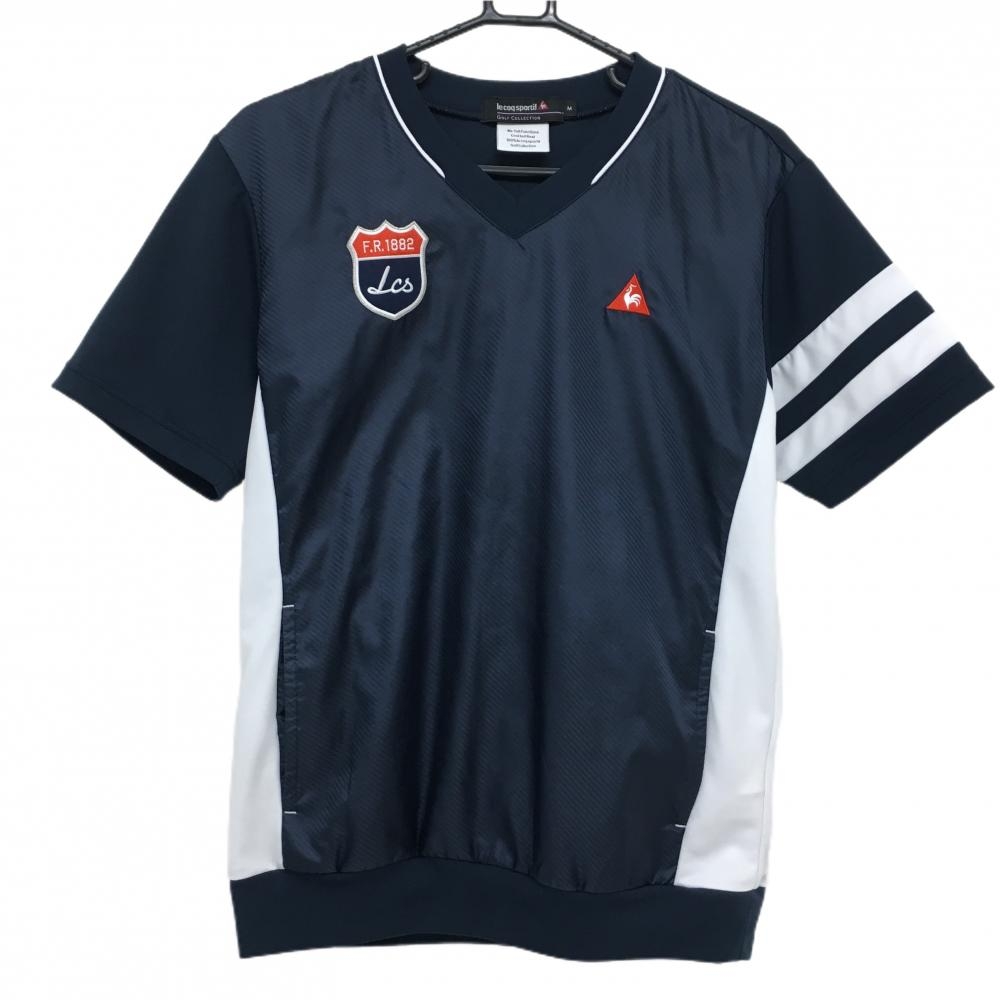【超美品】ルコックゴルフ 半袖スニード ブルーグリーン系×ネイビー×イエロー レディース M ゴルフウェア le coq sportif