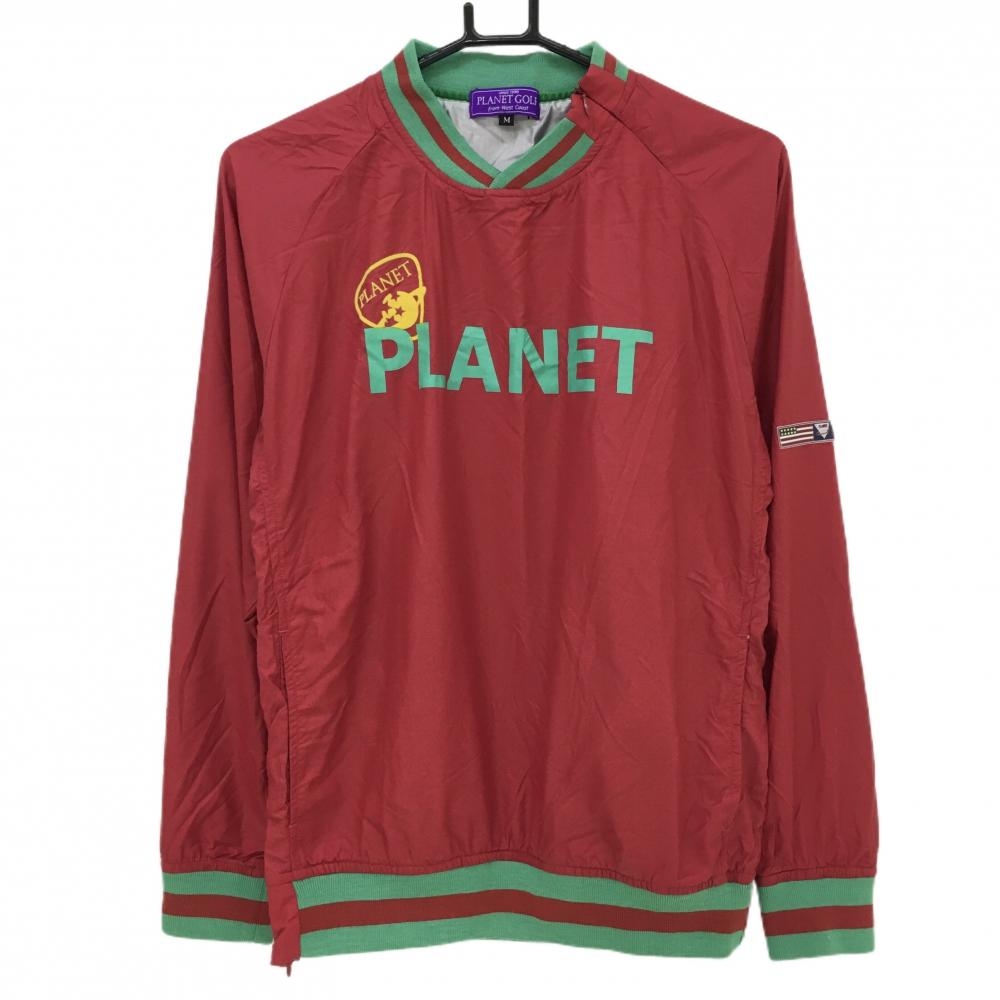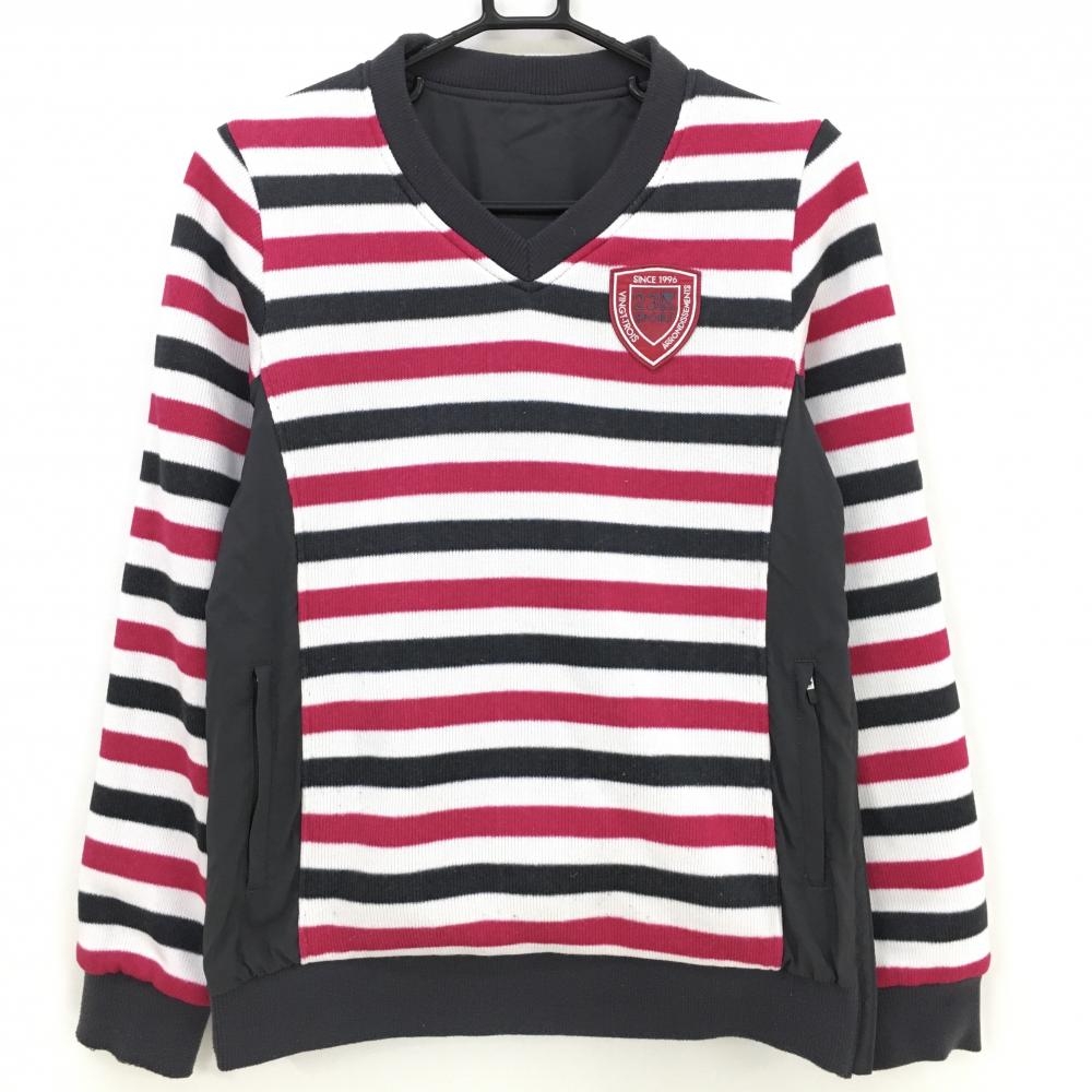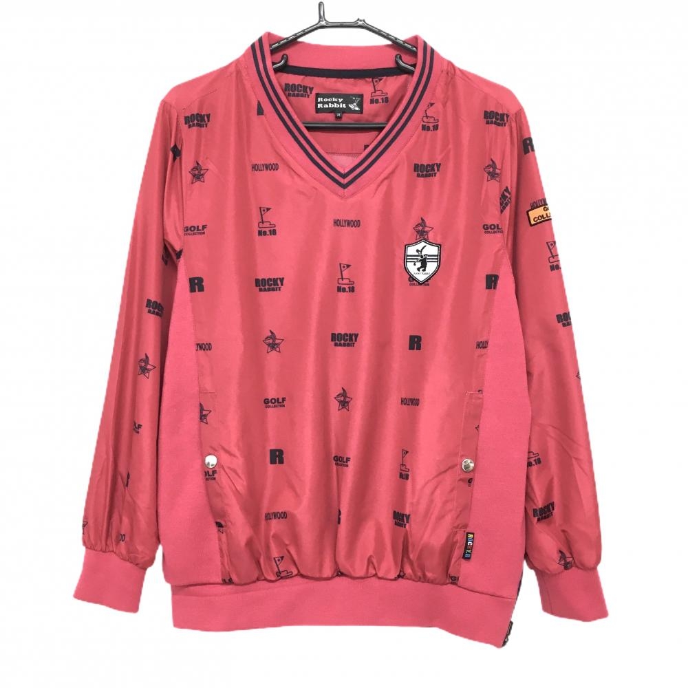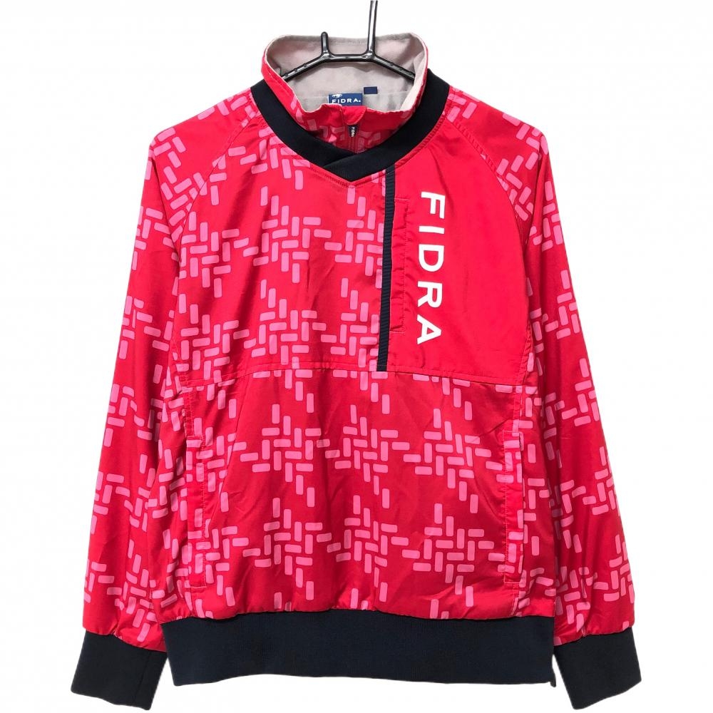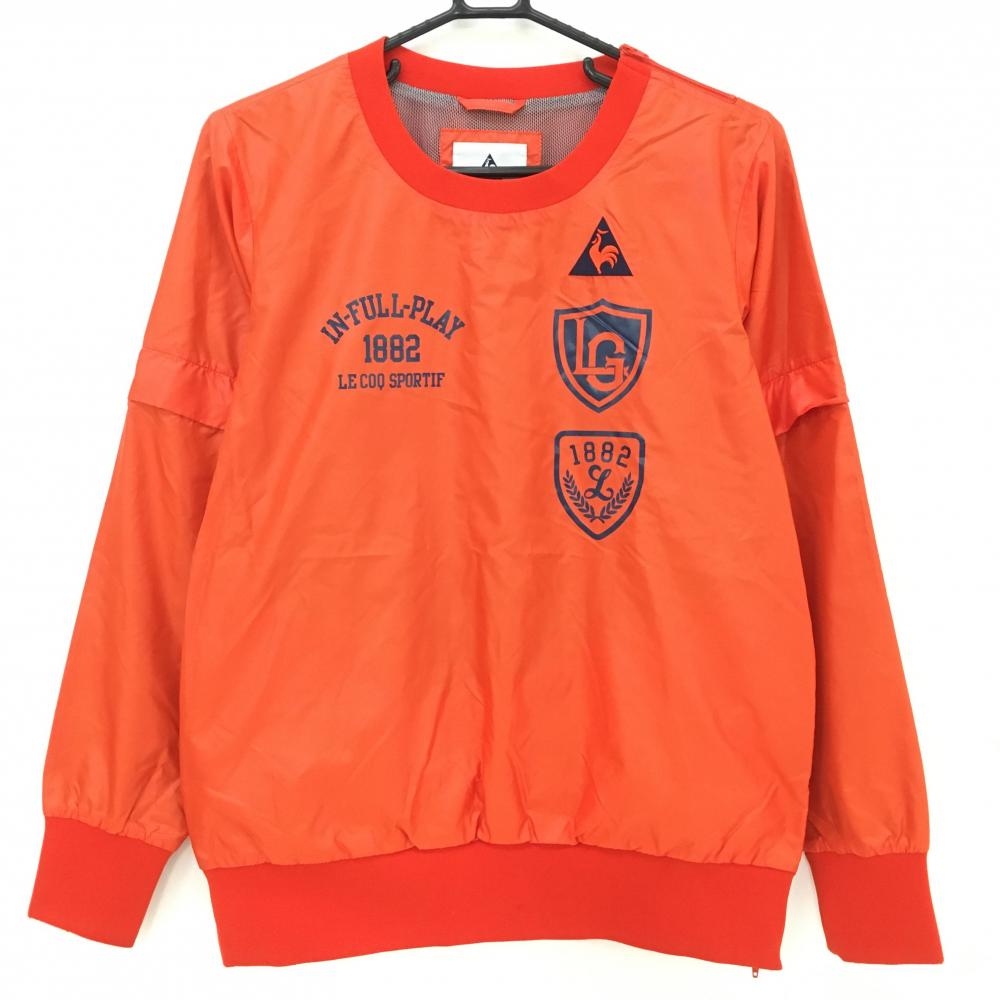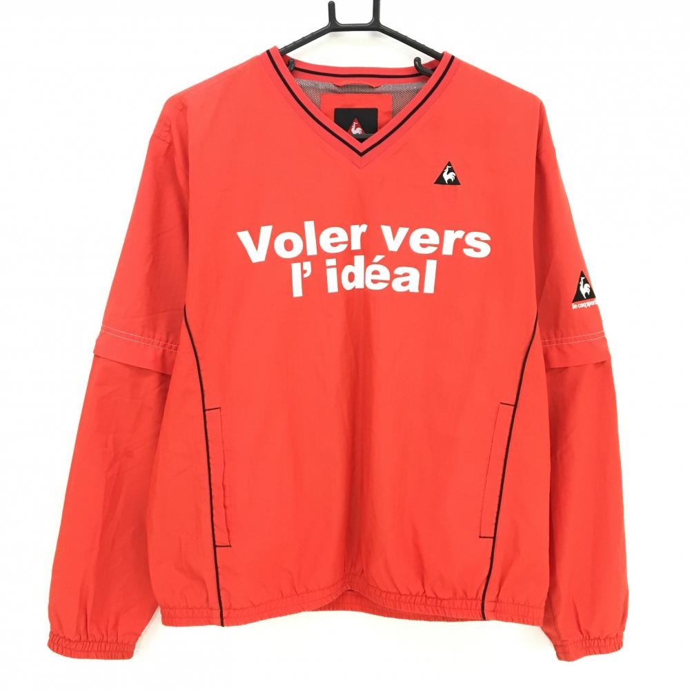 【美品】ルコック ナイロンスニード レッド ロゴ総柄 裏微起毛 Vネック レディース M ゴルフウェア le coq sportif