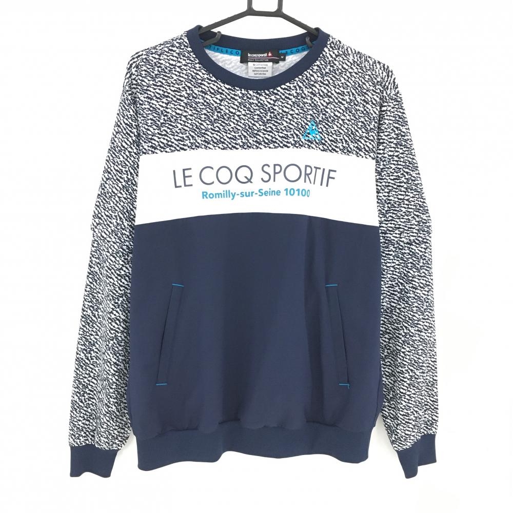 ルコックゴルフ 2WAYスニード 白×パープルネイビー 前身頃総柄 裏地メッシュ 袖着脱可 メンズ LL ゴルフウェア le coq sportif