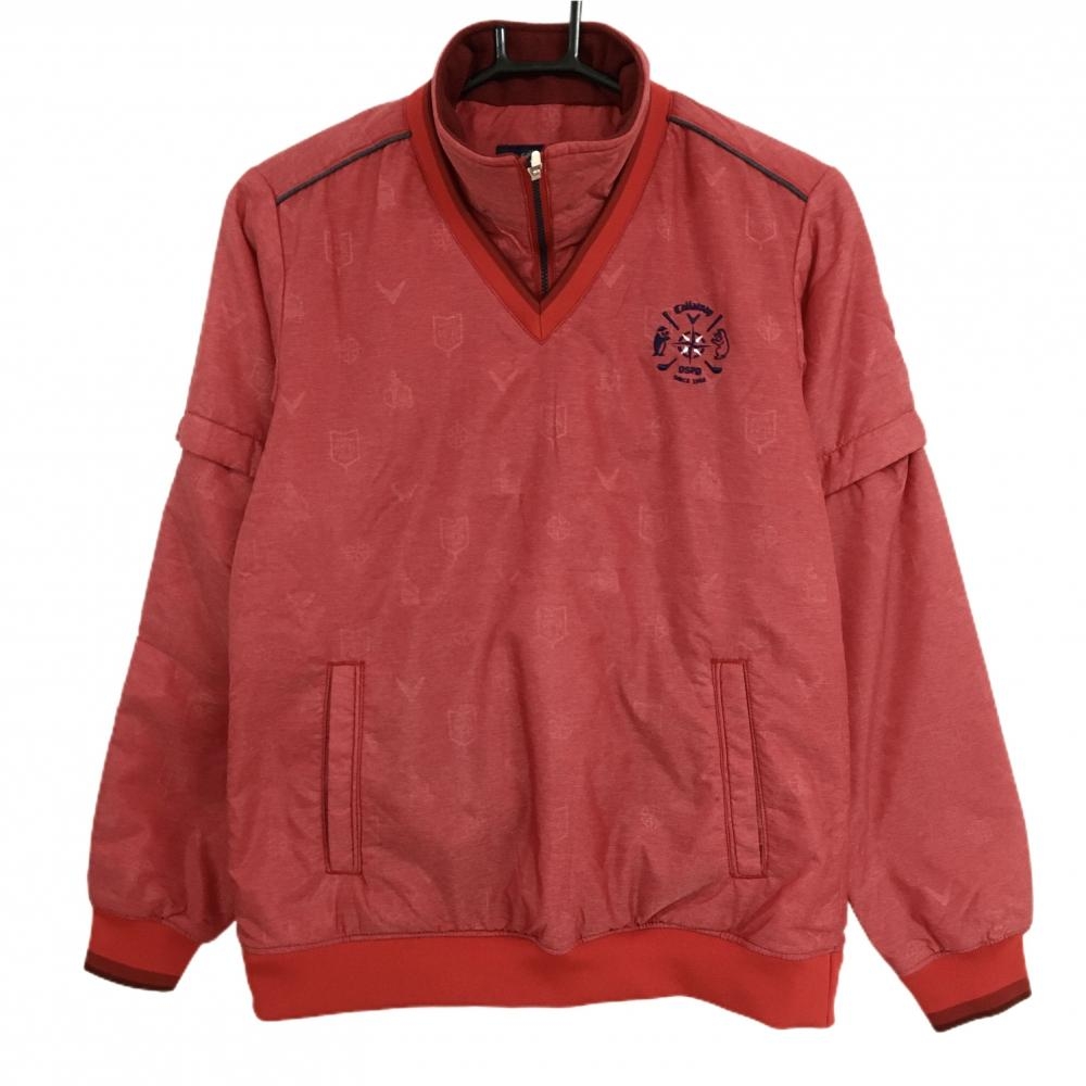 【超美品】キャロウェイ 4WAY中綿スニード 杢レッド×ネイビー ブルゾン 袖・ネック着脱可 Vネック メンズ 3L ゴルフウェア Callaway