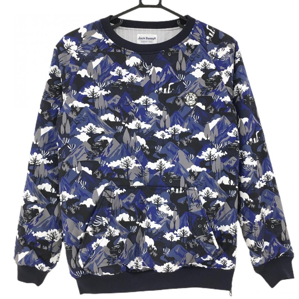 【超美品】ジャックバニー 中綿スニード ブルー×白 フォレスト柄 蓄熱裏地 ブルゾン レディース 0(S) ゴルフウェア Jack Bunny