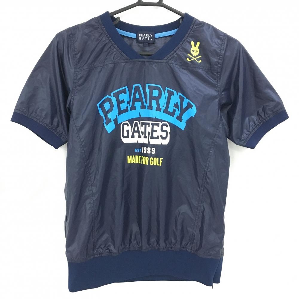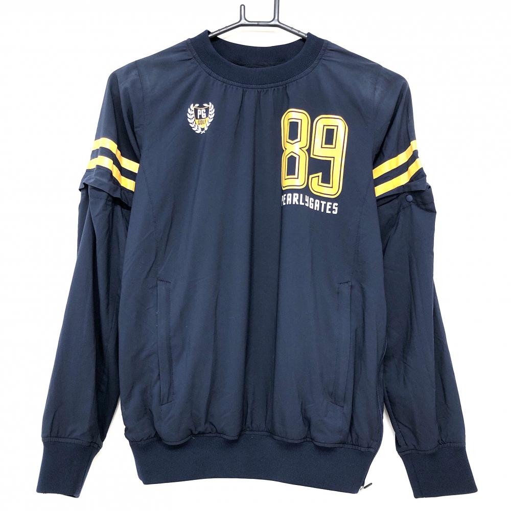 【美品】パーリーゲイツ 2WAYスニード ネイビー×イエロー メッシュ裏地 袖着脱可 レディース 0(S) ゴルフウェア PEARLY GATES