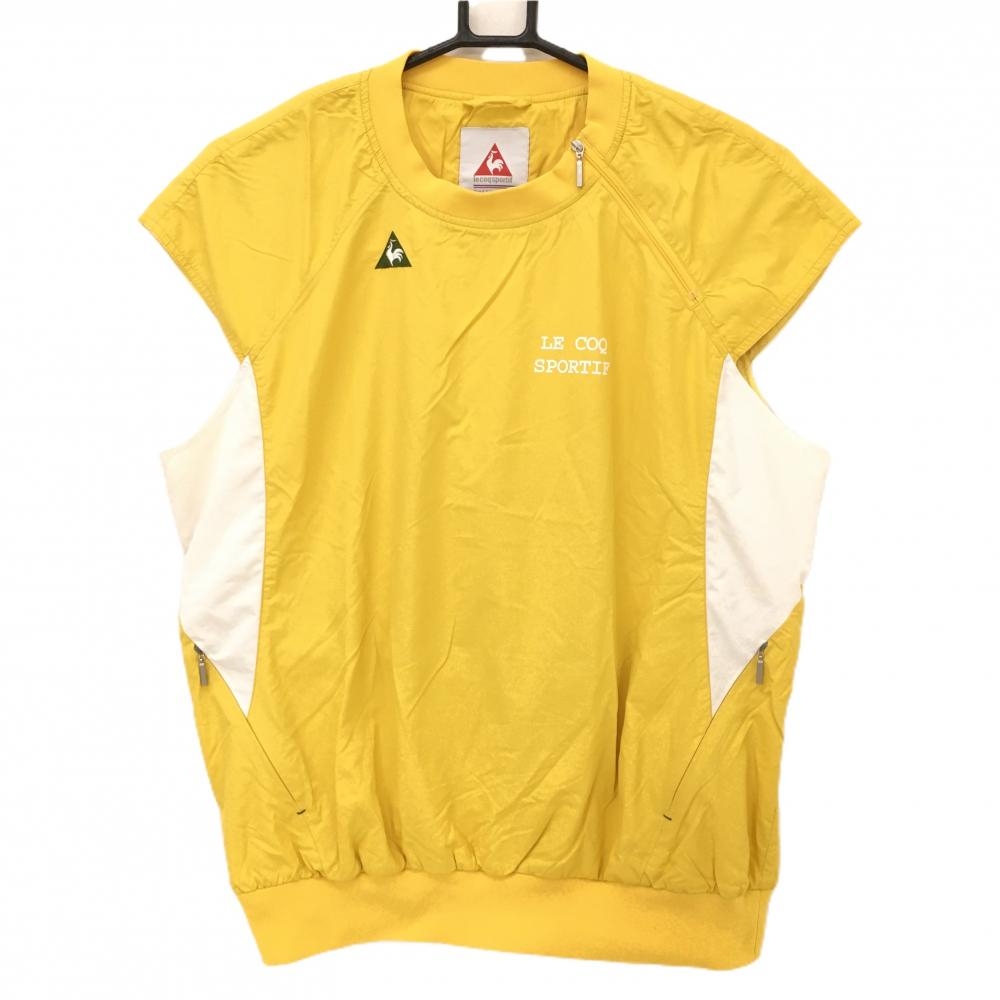 【美品】ルコックゴルフ スニード イエロー×ネイビー 薄手 ブルゾン 袖口・裾ライン レディース M ゴルフウェア le coq sportif