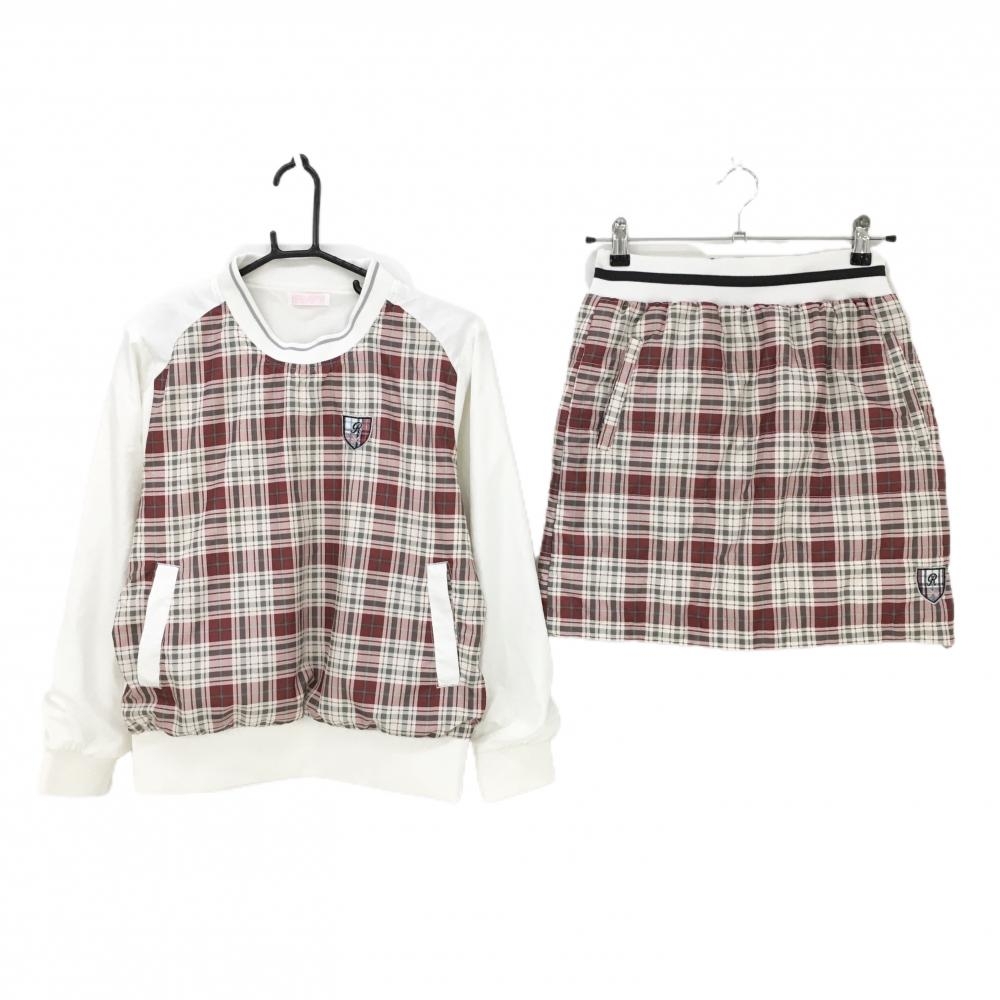 マスターバニー スニード レッド×白 チェック Vネック 裾ドローコード 蓄熱裏地 レディース 1(M) ゴルフウェア MASTER BUNNY EDITION
