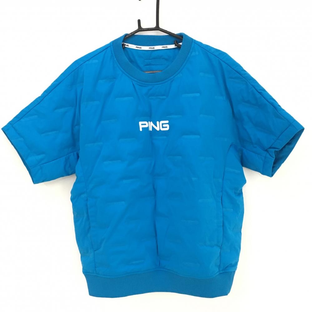 【超美品】ミズノゴルフ スニード ピンク×ライトブルー ロゴ刺しゅう ネック・袖口ライン メンズ L ゴルフウェア MIZUNO