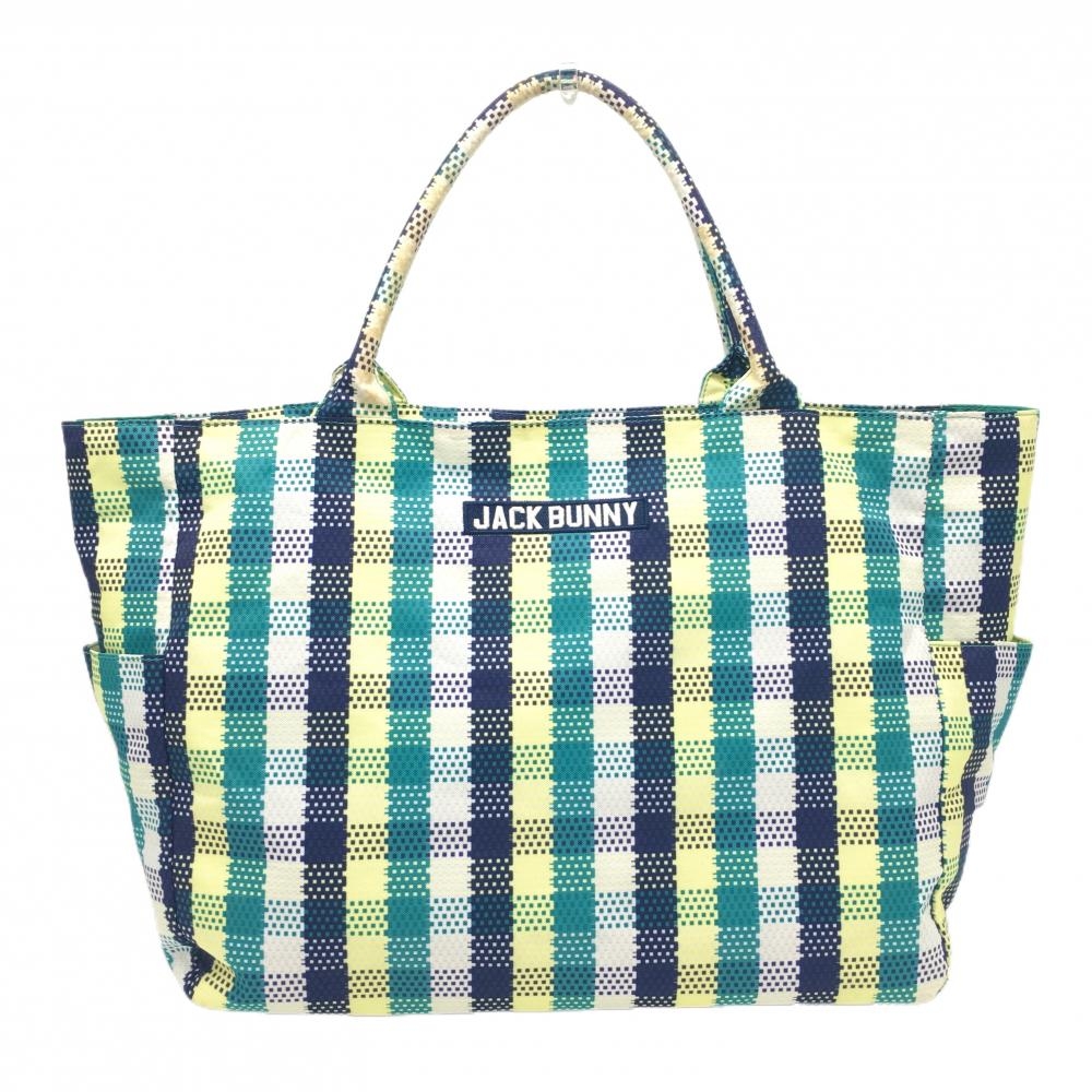 ジャックバニー ロッカーバッグ 白×ネイビー×イエロー チェック ブロックチェック 内サイドポケット トートバッグゴルフ Jack Bunny