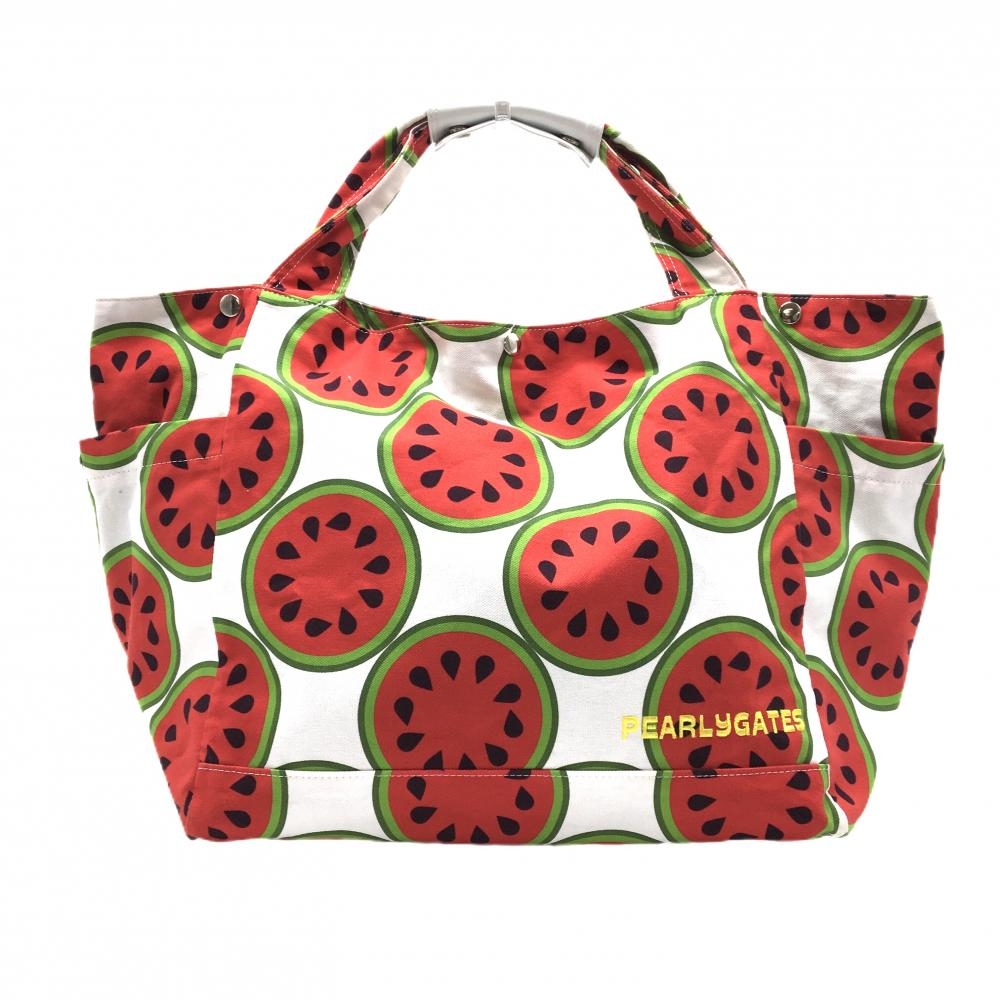 パーリーゲイツ ロッカーバッグ 白×レッド 総柄 ビッグトート 内サイドポケット付 ゴルフ PEARLY GATES