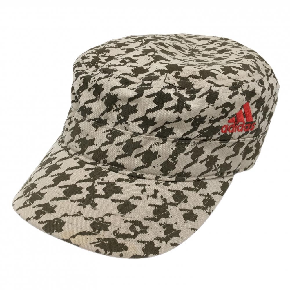 【美品】アディダス ワークキャップ ブラウン×黒 チェック 表微起毛 一部ボア裏地 57cm ゴルフウェア adidas
