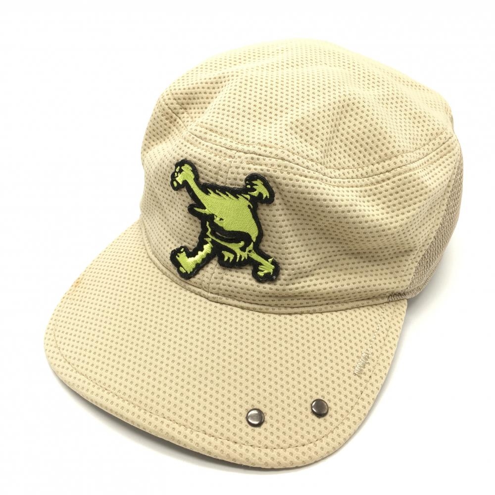 【美品】アディダス ワークキャップ カーキ つばスタッズ ロゴ黒 ONE SIZE(56-59cm) ゴルフウェア adidas